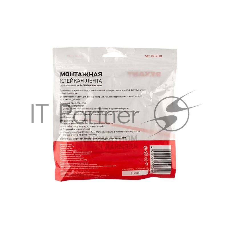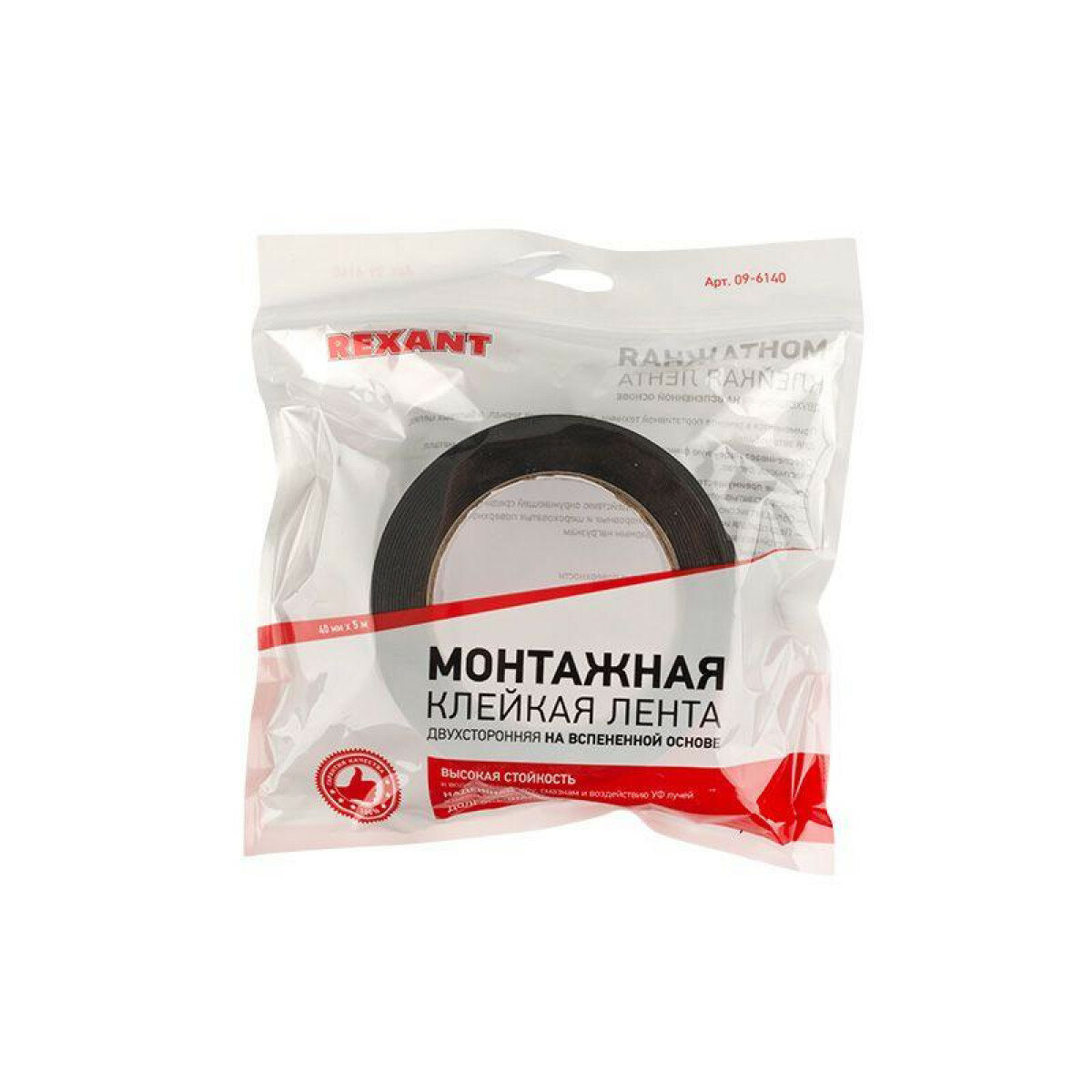 Двухсторонний Скотч , Черная, Вспененная Эва Основа, 40 Мм, Ролик 5 М Rexant 09-6140 REXANT арт. 09-6140
