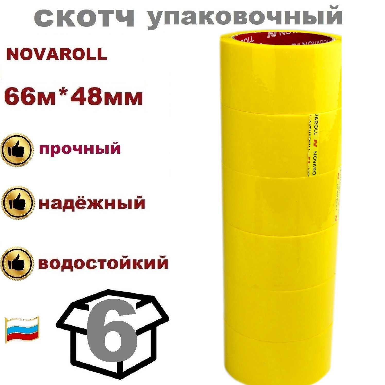 Купить Novaroll 48мм*66 м, 6 шт в наборе клейкая лента канцелярская широкая липкая желтая / скотч цветной желтый