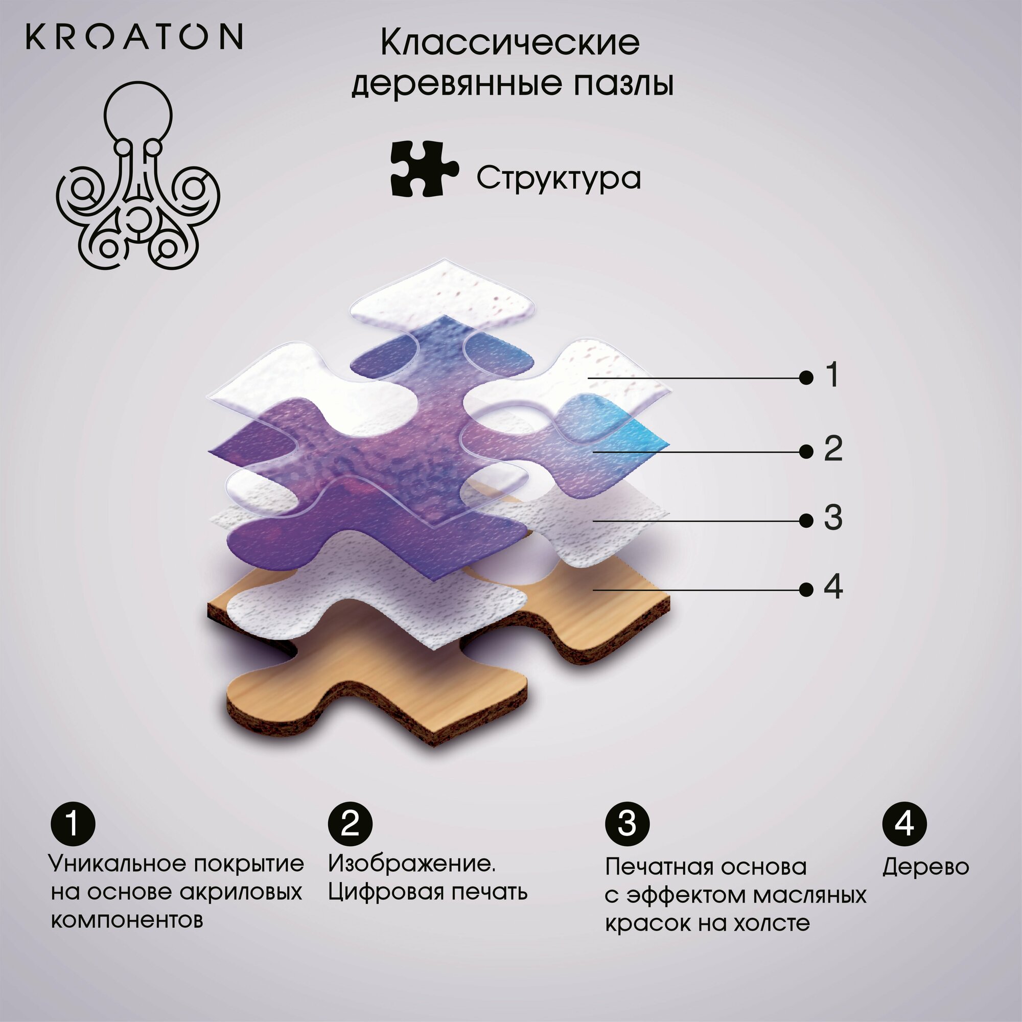 Пазл из фотографии фигурный деревянный Kroaton 305 деталей 41х29см интересное: