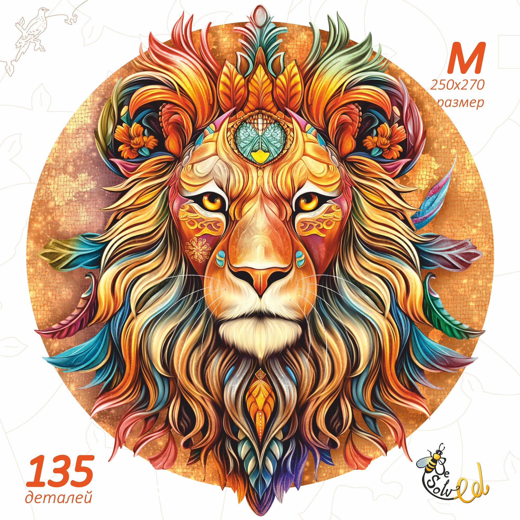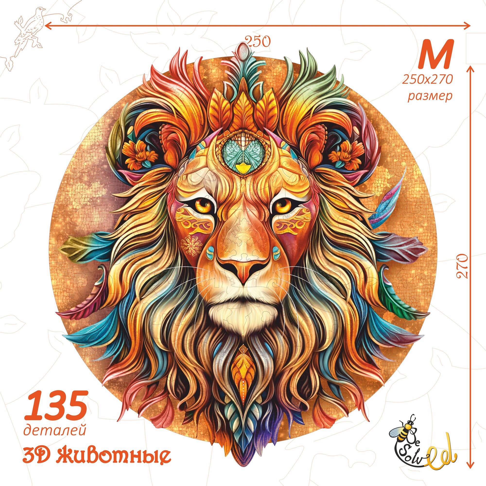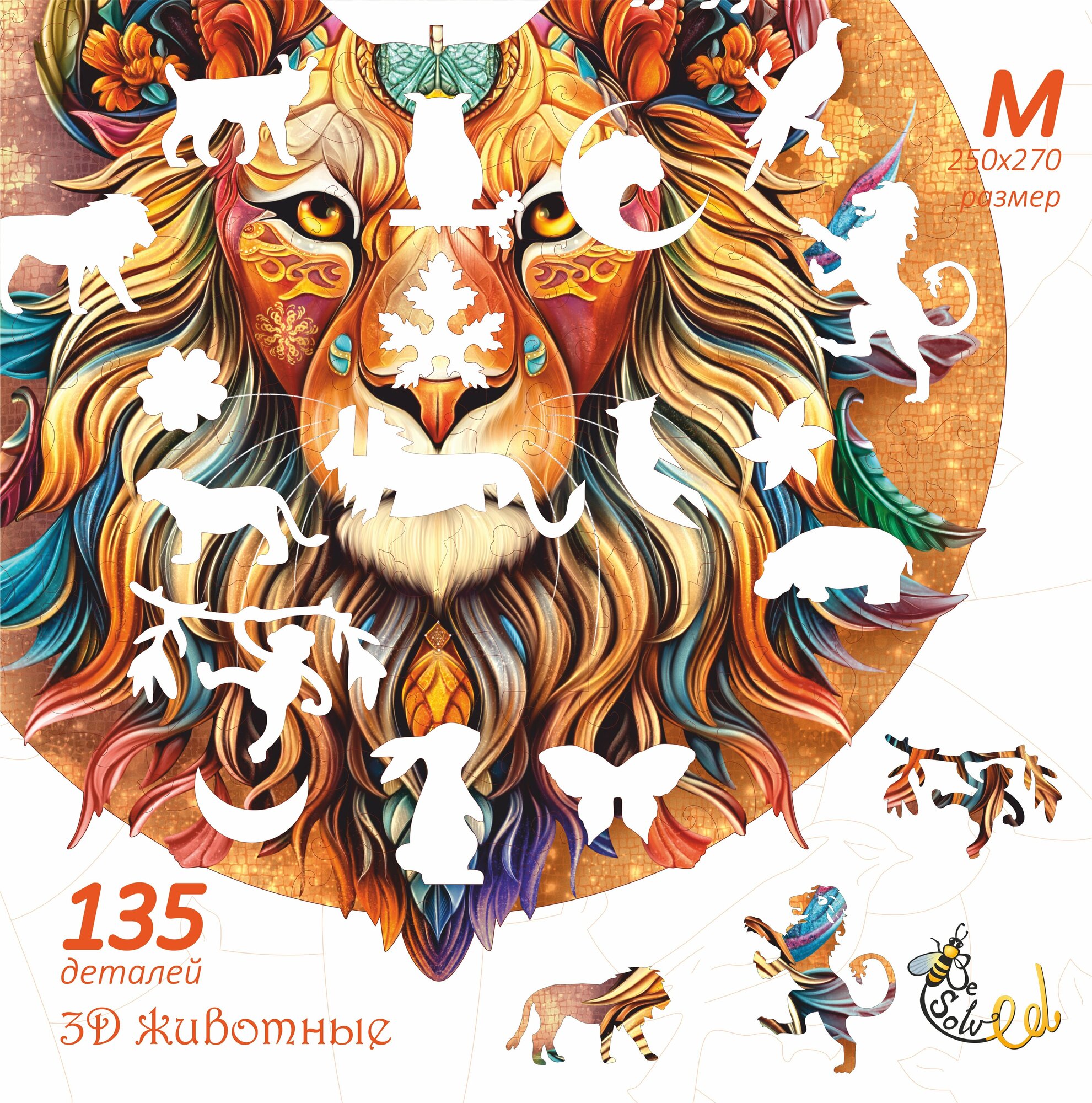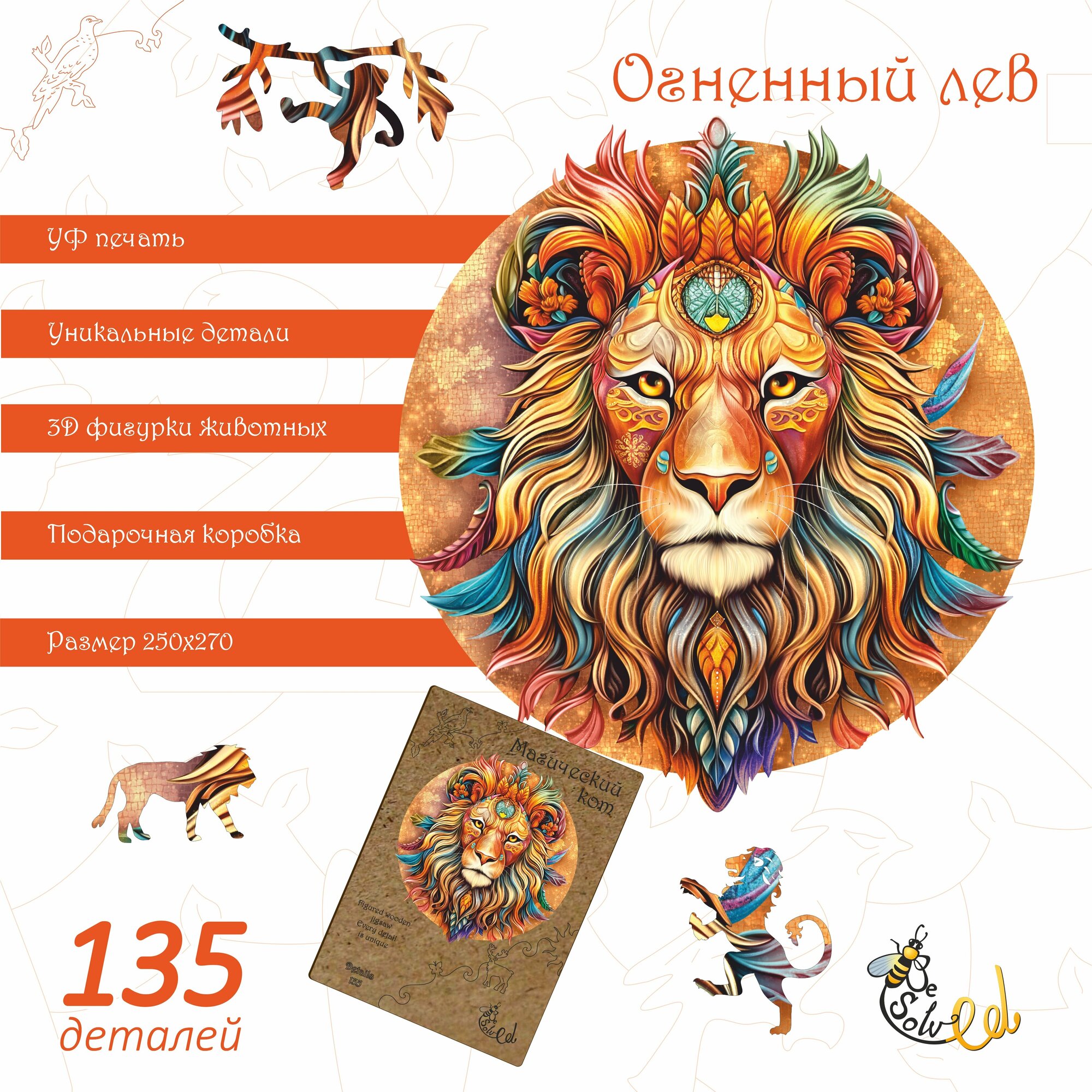 Купить "Огненный Лев" - деревянный пазл для детей и взрослых, 135 элементов в форме животных