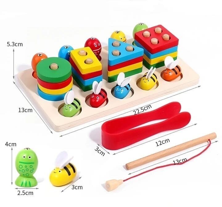Развивающая игрушка "3в1" «Геометрический сортер - Магнитная рыбалка - Пинцетная ловля пчел» интересное: