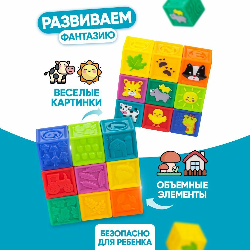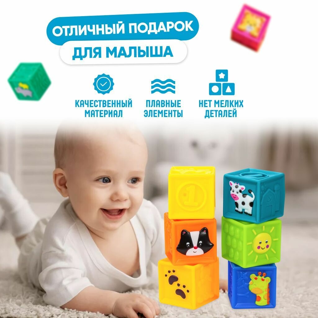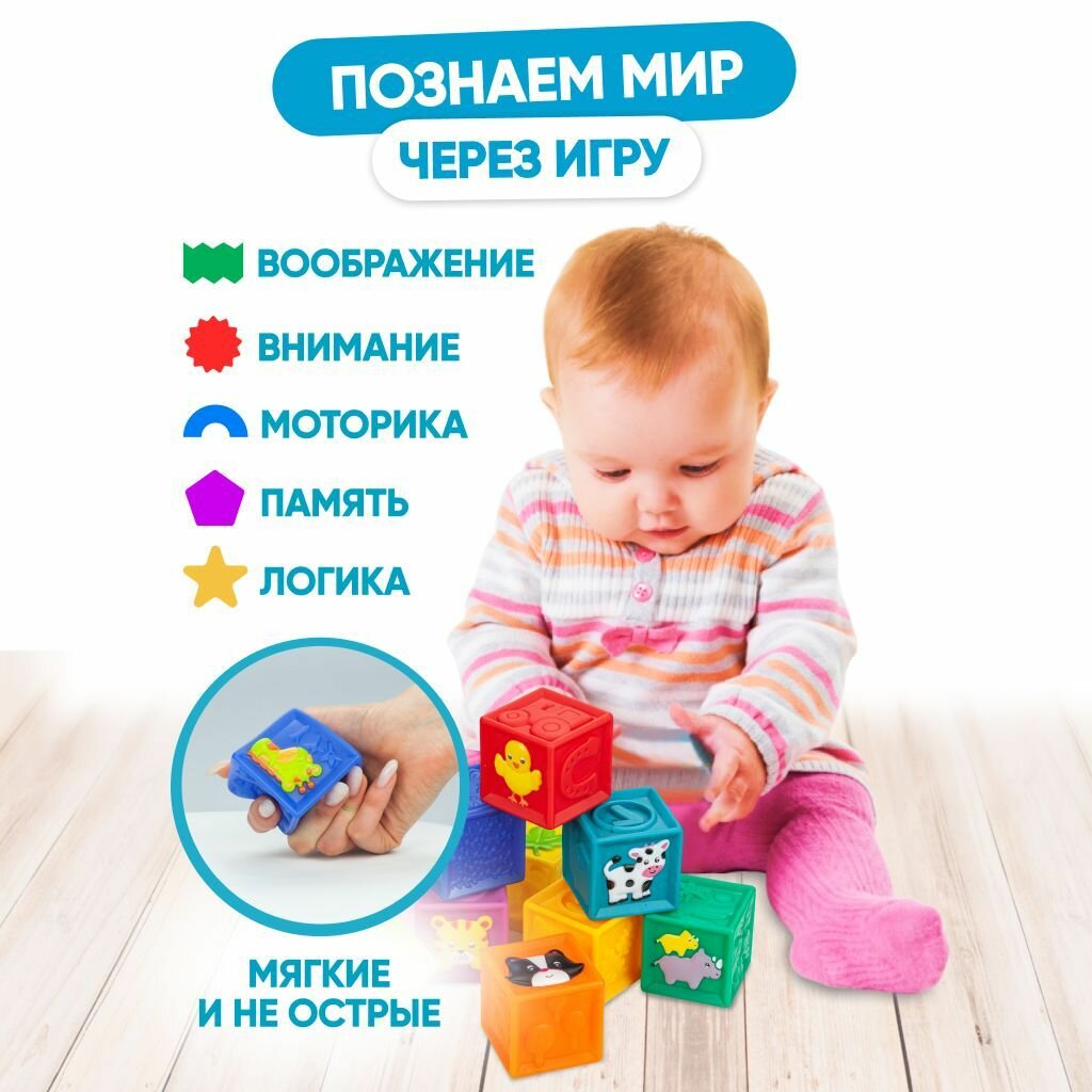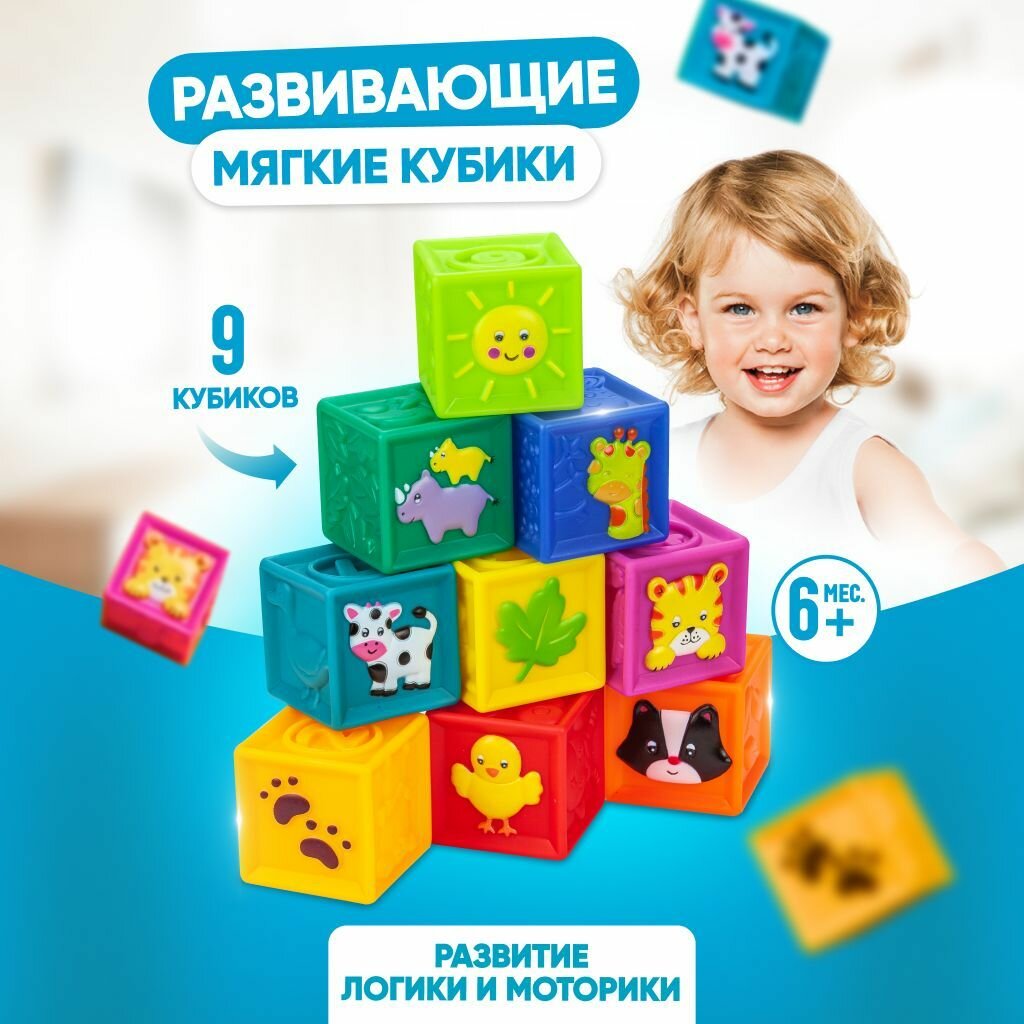 Развивающие мягкие кубики, цветные,тактильные с животными, набор Solmax из 9 шт малышей интересное: