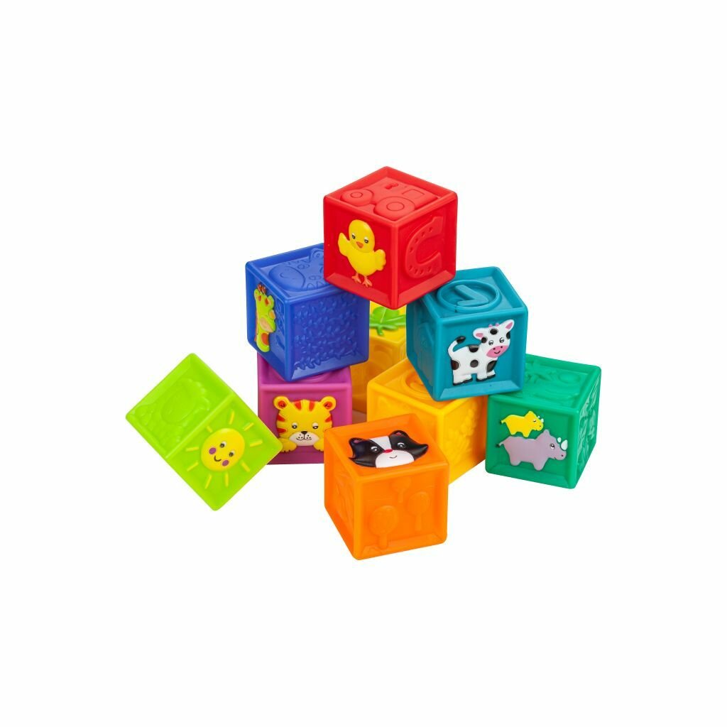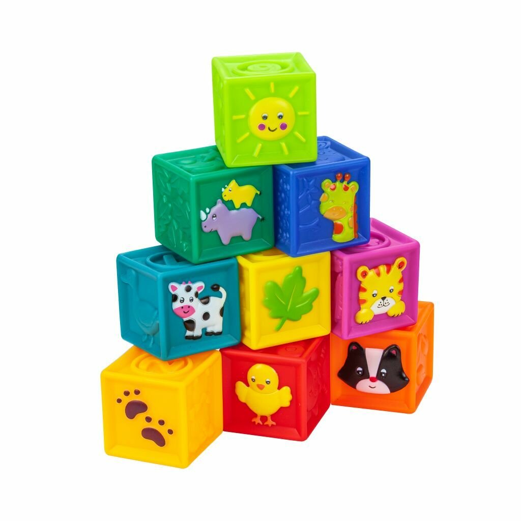 Купить Развивающие мягкие кубики, цветные,тактильные с животными, набор Solmax из 9 шт малышей