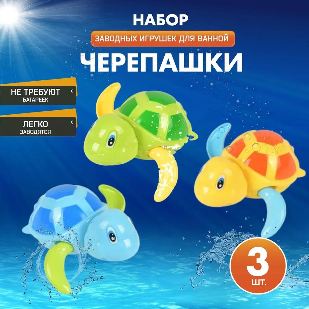 Купить Игрушки детские для ванной, для купания Заводные черепашки 3 шт