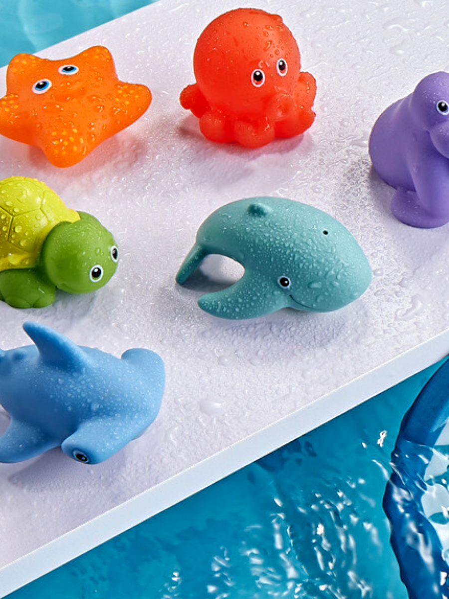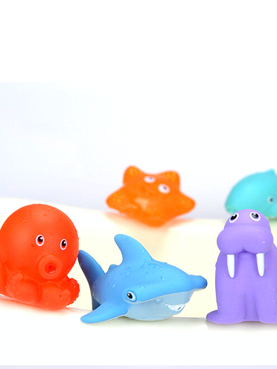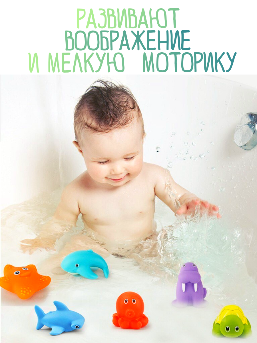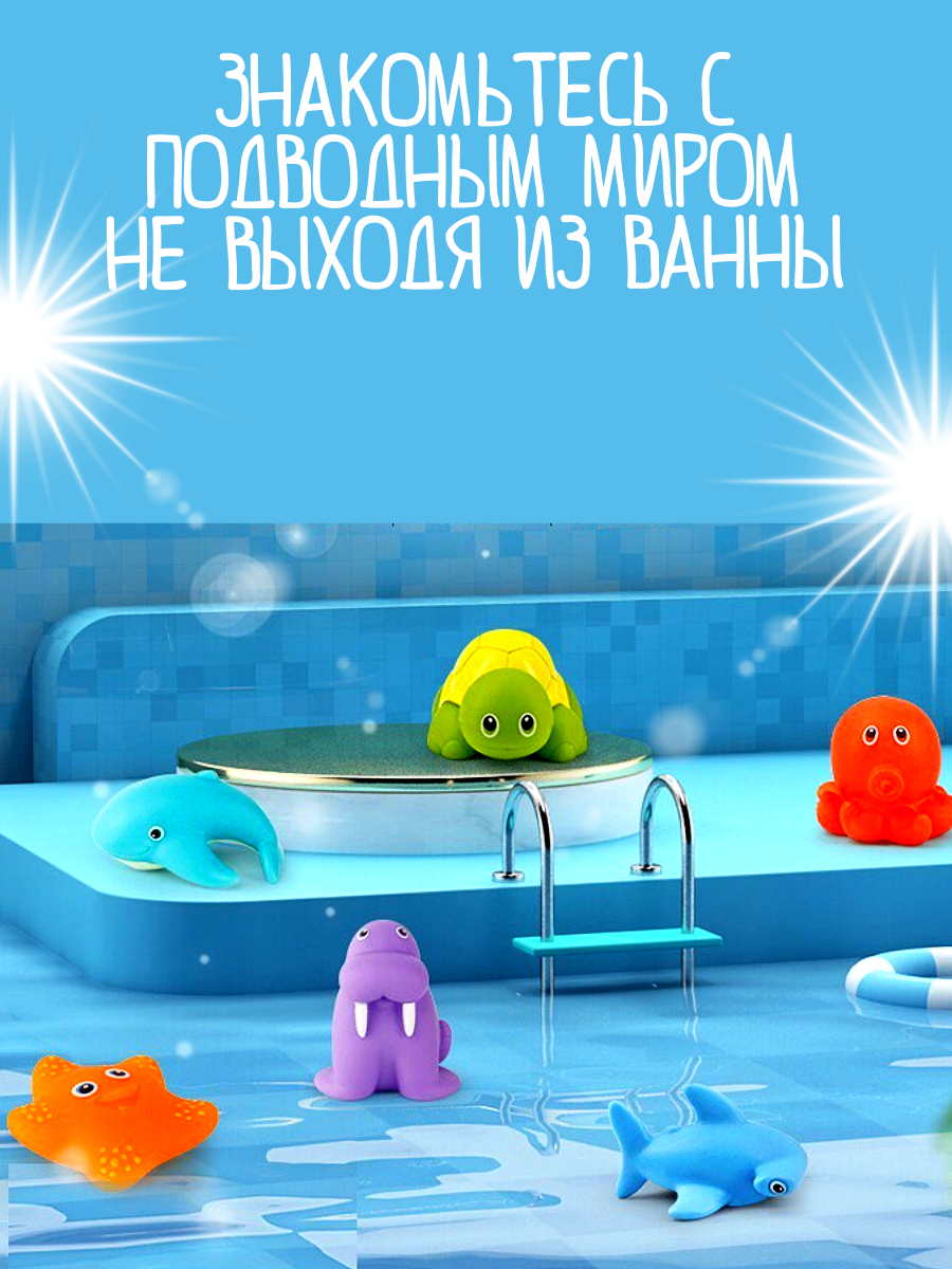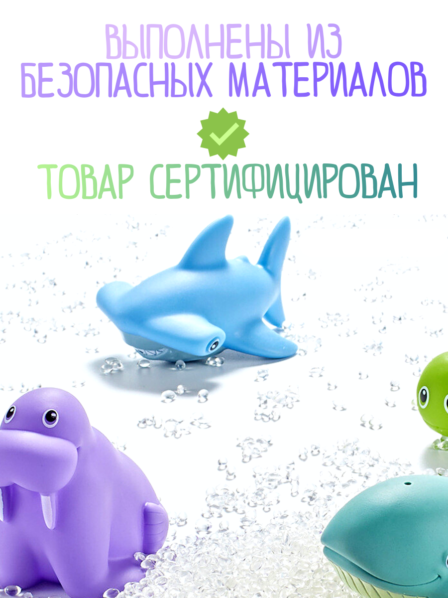 | Виды игрушек в комплекте | акула, дельфин, морской котик, осьминог, черепашка |