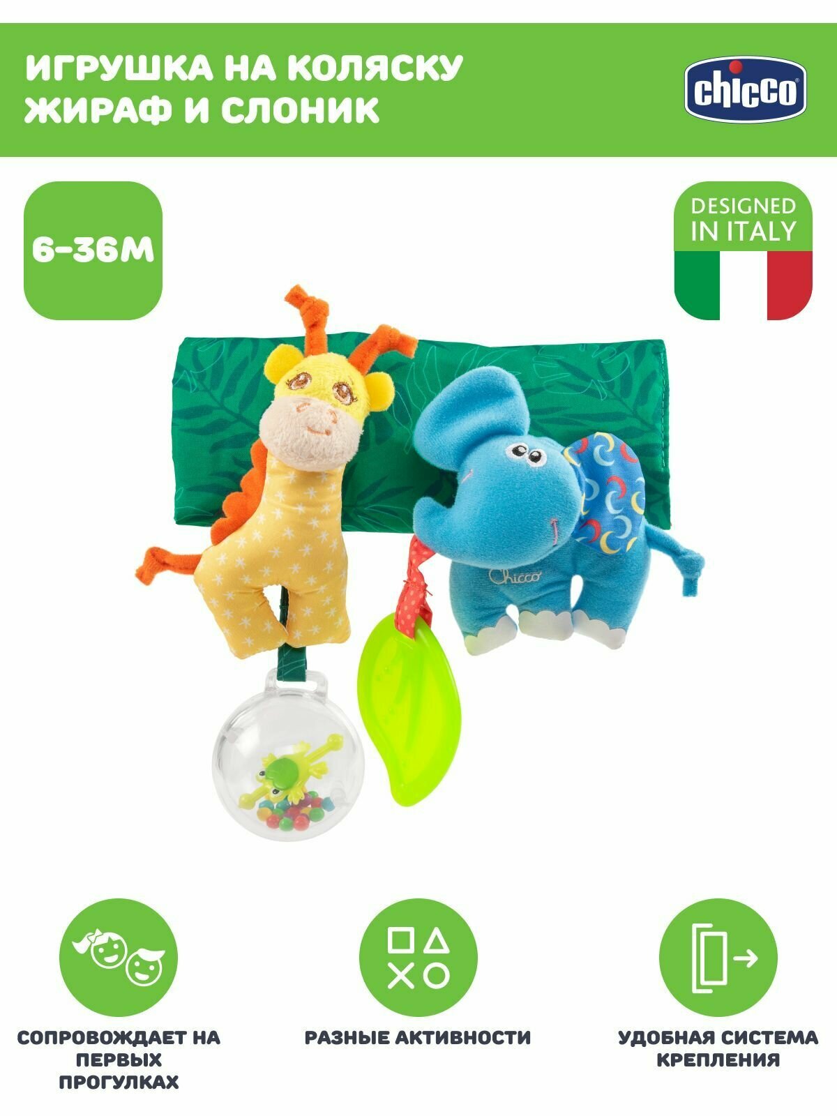 Купить Игрушка подвеска на коляску Chicco Жираф и Слоник для детей от 6 месяцев до 3 лет