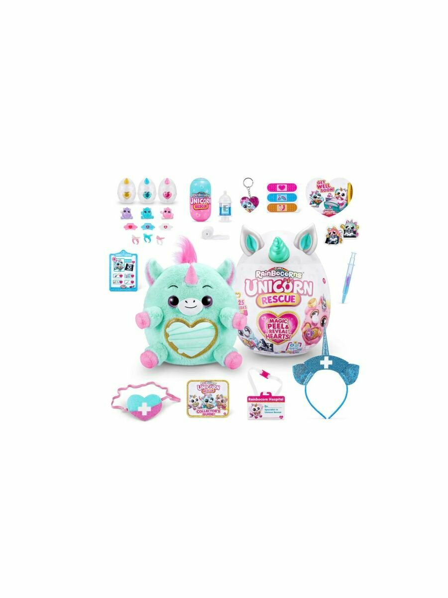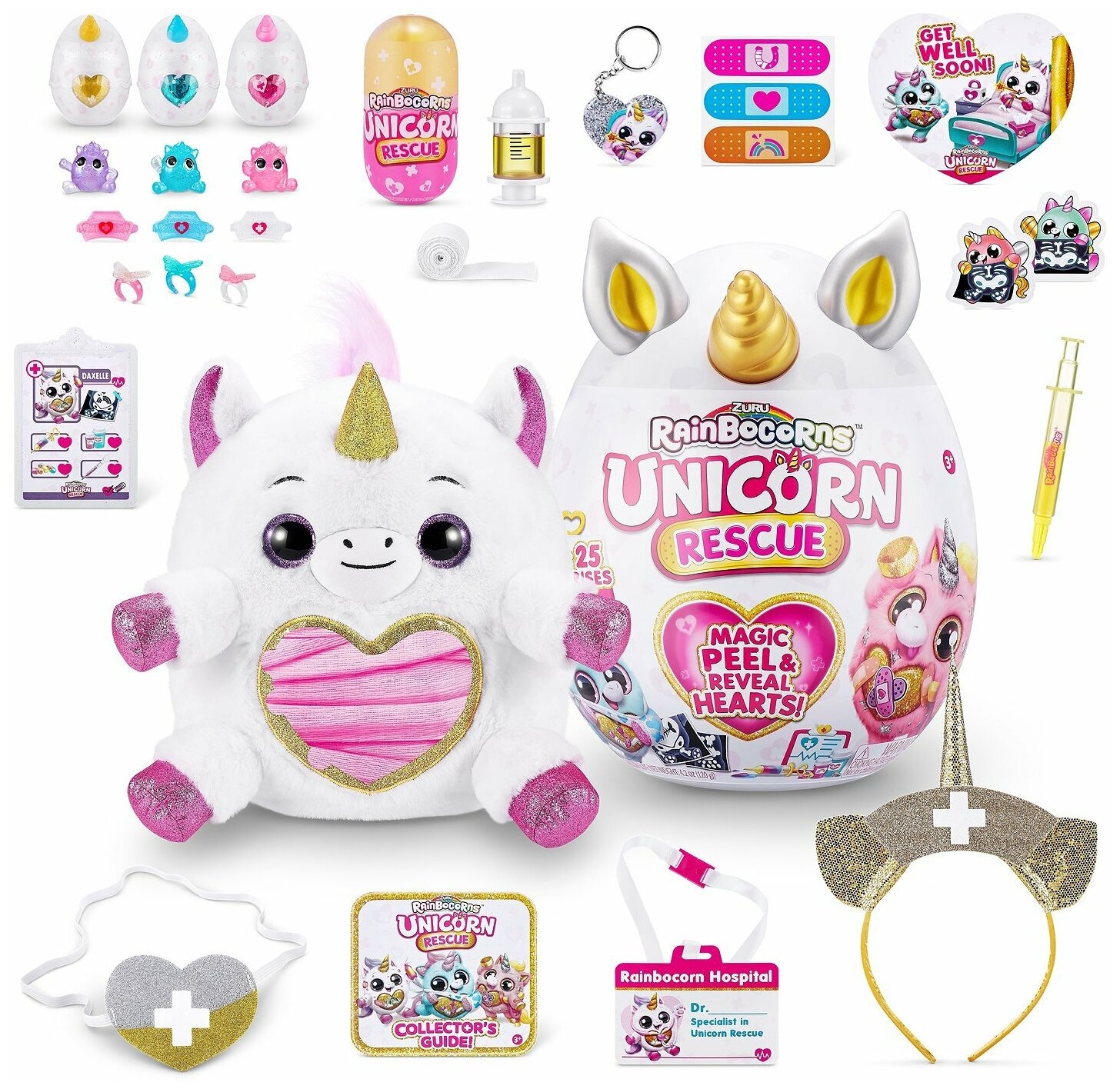 | Комплектация | 1 плюшевый единорог, 1 яйцо единорога, 1 стираемое сердце, 3 яйца Бу-Букорн, 3 доктора Бу-Букорн, 1 повязка на голову, 1 волшебная палочка для исцеления, 1 волшебный слайм, 1 какашка Rainbocorn, 1 открытка «Скорейшего выздоровления», 1 отчeт об осмотре тела, 2 рентгеновские наклейки, 3 бинта, 1 упаковка бусин, 3 брелока, руководство для коллекционеров |