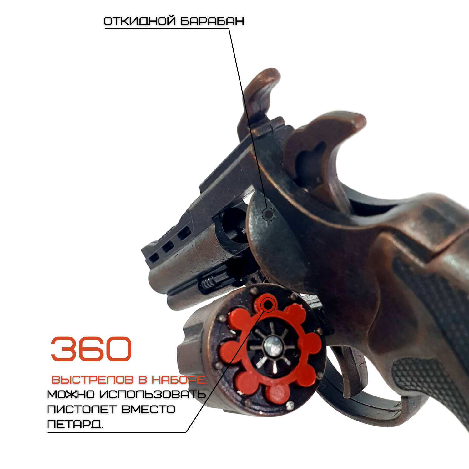 Пистолет металлический с кобурой, пугач 360 пистонов в комплекте, бронзовый интересное: