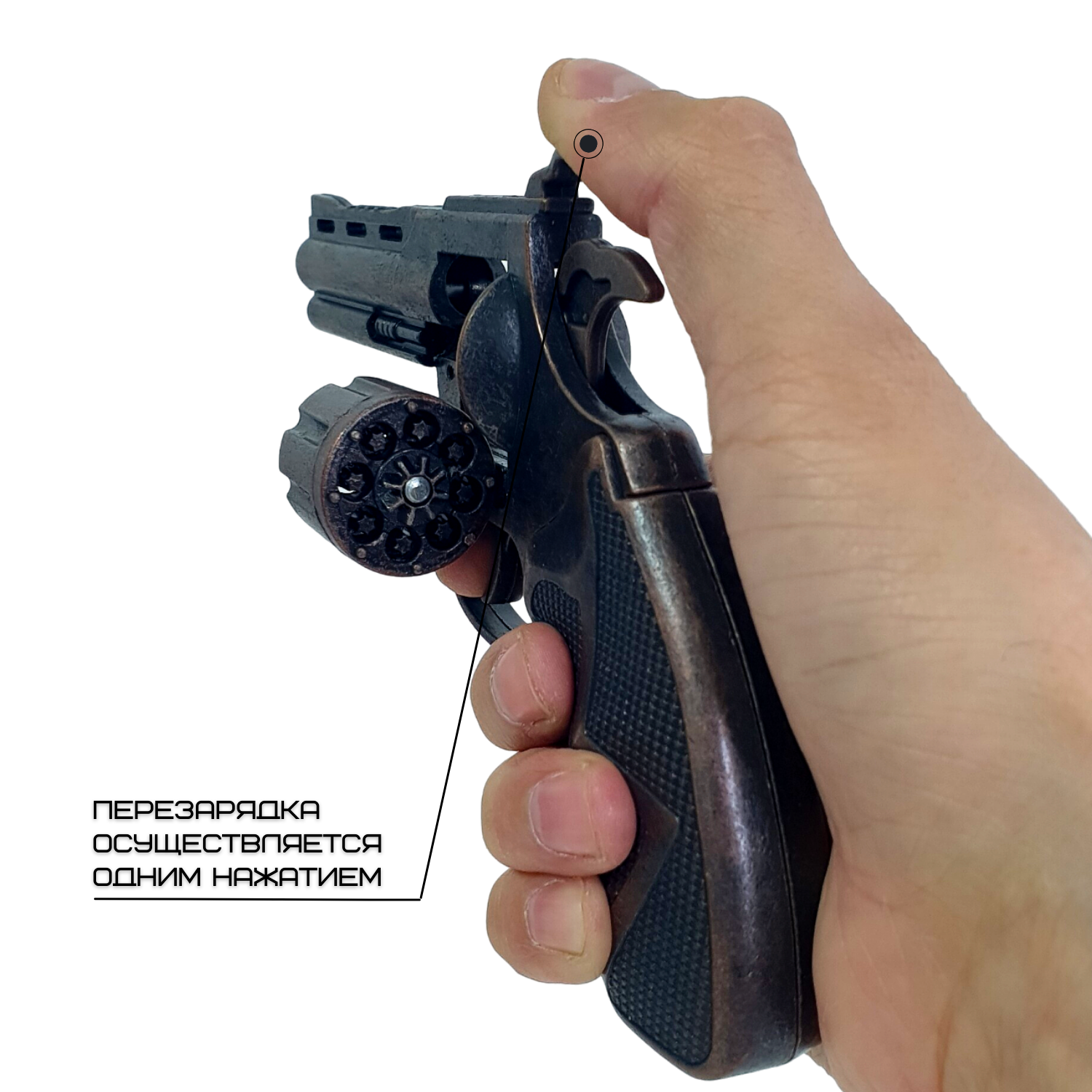 | Комплектация | Револьвер - 1 шт. Кобура - 1 шт. Пистоны - 360 шт. Масленка - 1 шт. Коробка - 1 шт. |