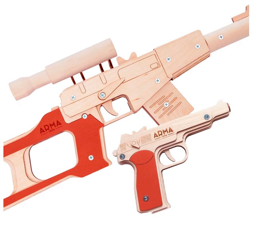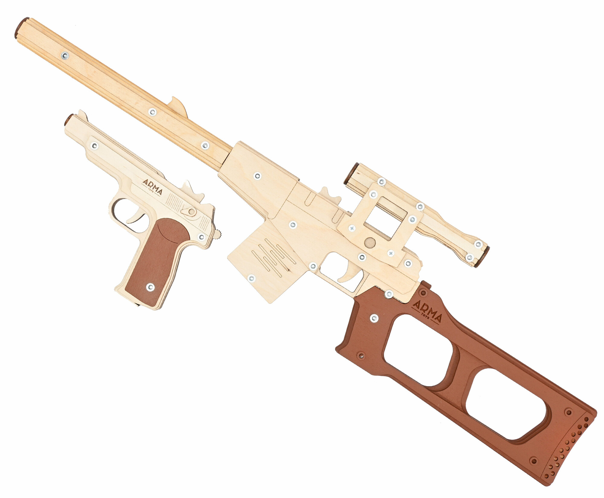 Купить Набор "Российский снайпер - 1": резинкострелы "Винторез" и пистолет Стечкина из дерева