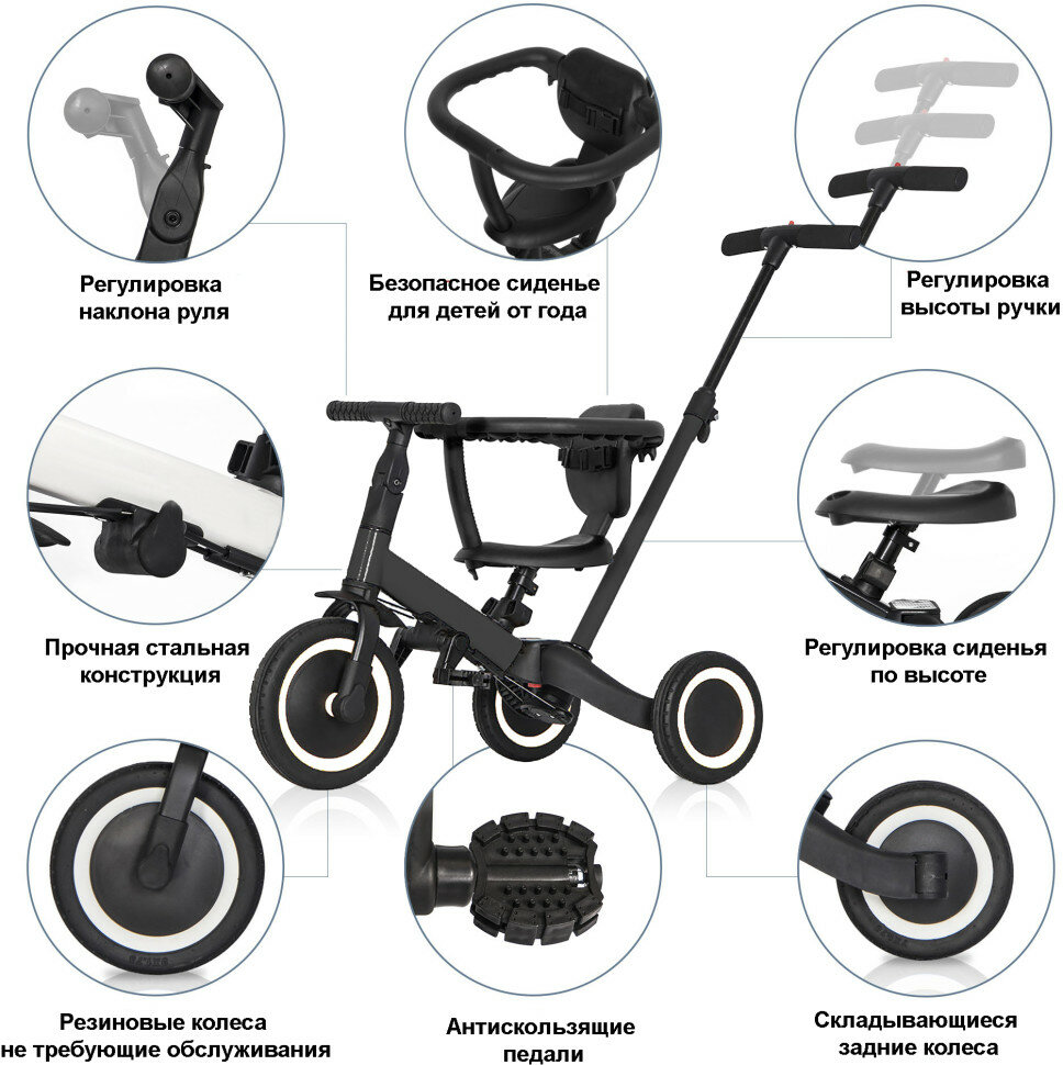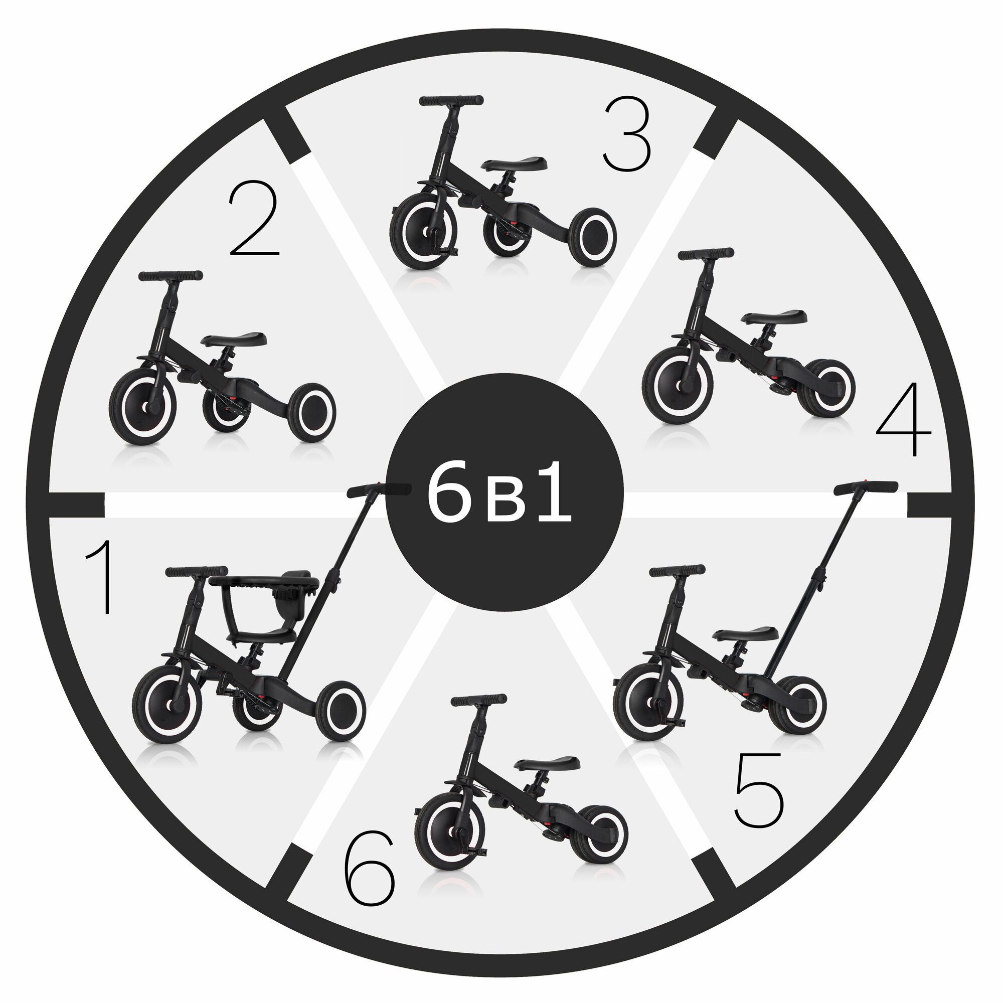 Купить Детский беговел-велосипед 6в1 с родительской ручкой, черный - TR008-BLACK (TR008-BLACK)