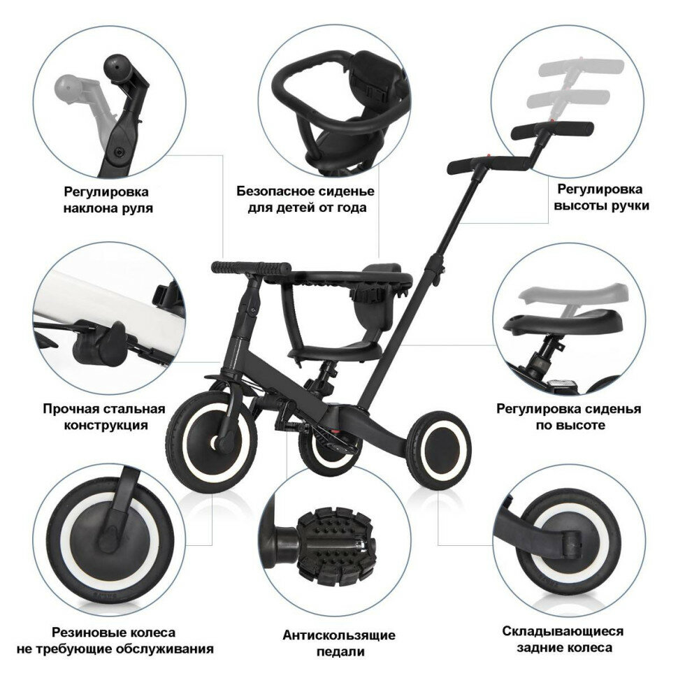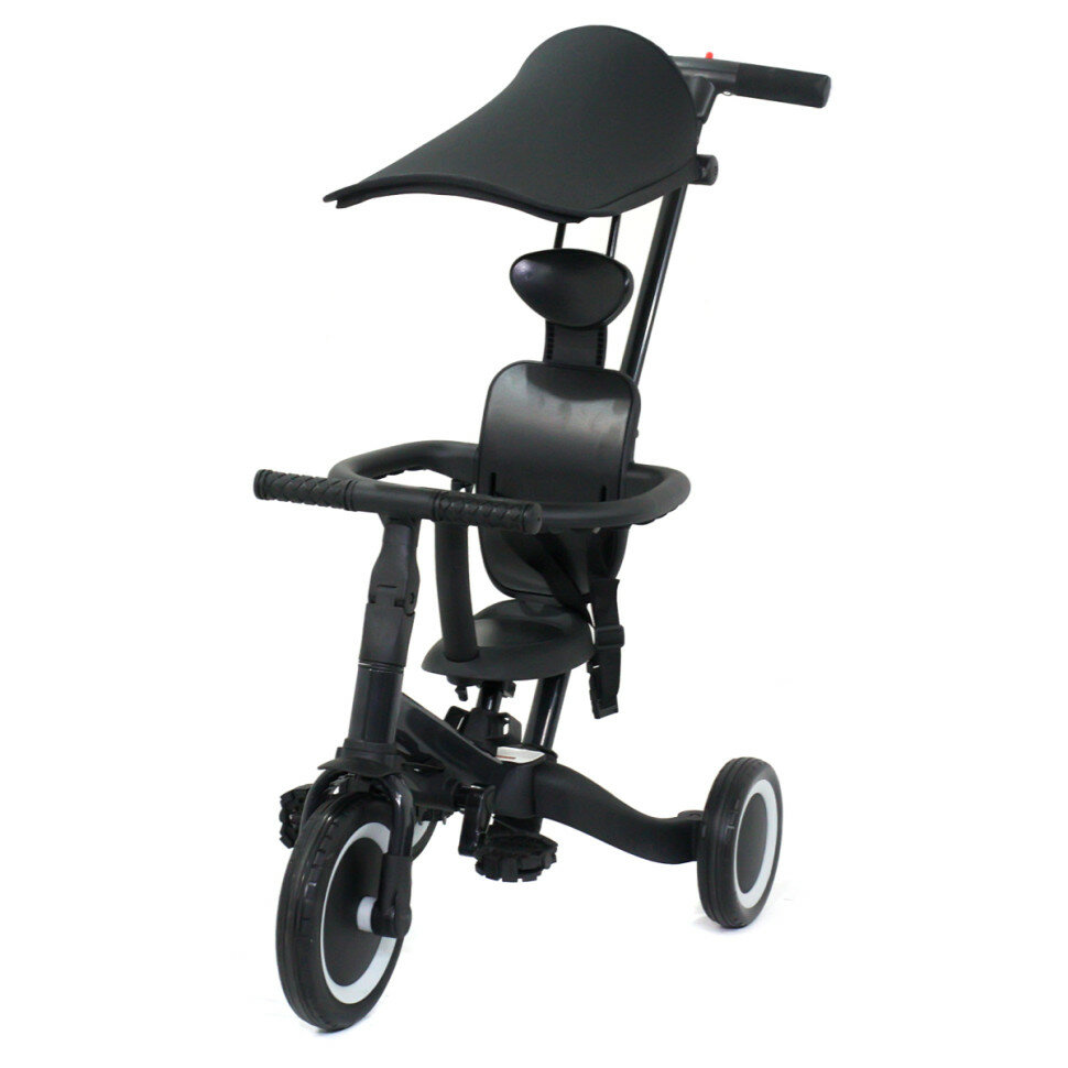 Детский беговел-велосипед 8в1 с крышей и ручкой, черный - TR008C-BLACK интересное: