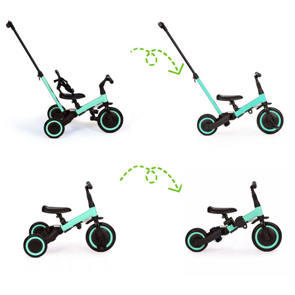 Детский беговел-велосипед 4-в-1 с родительской ручкой, зеленый интересное: