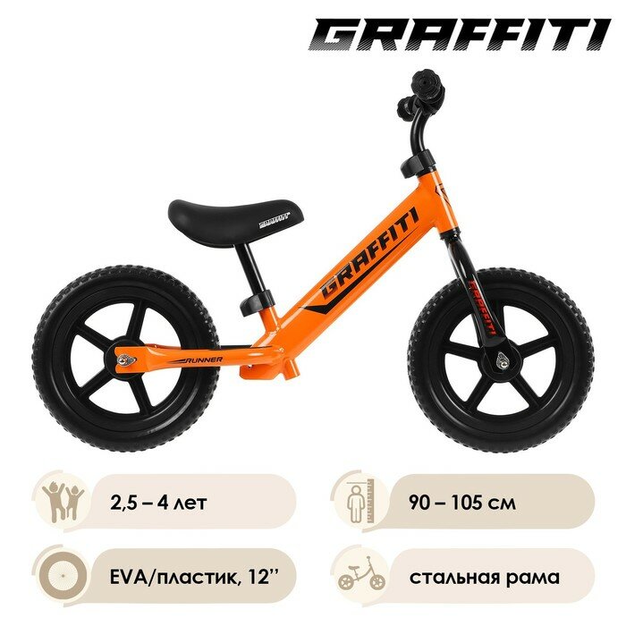 Беговел 12" GRAFFITI Runner, цвет оранжевый интересное: