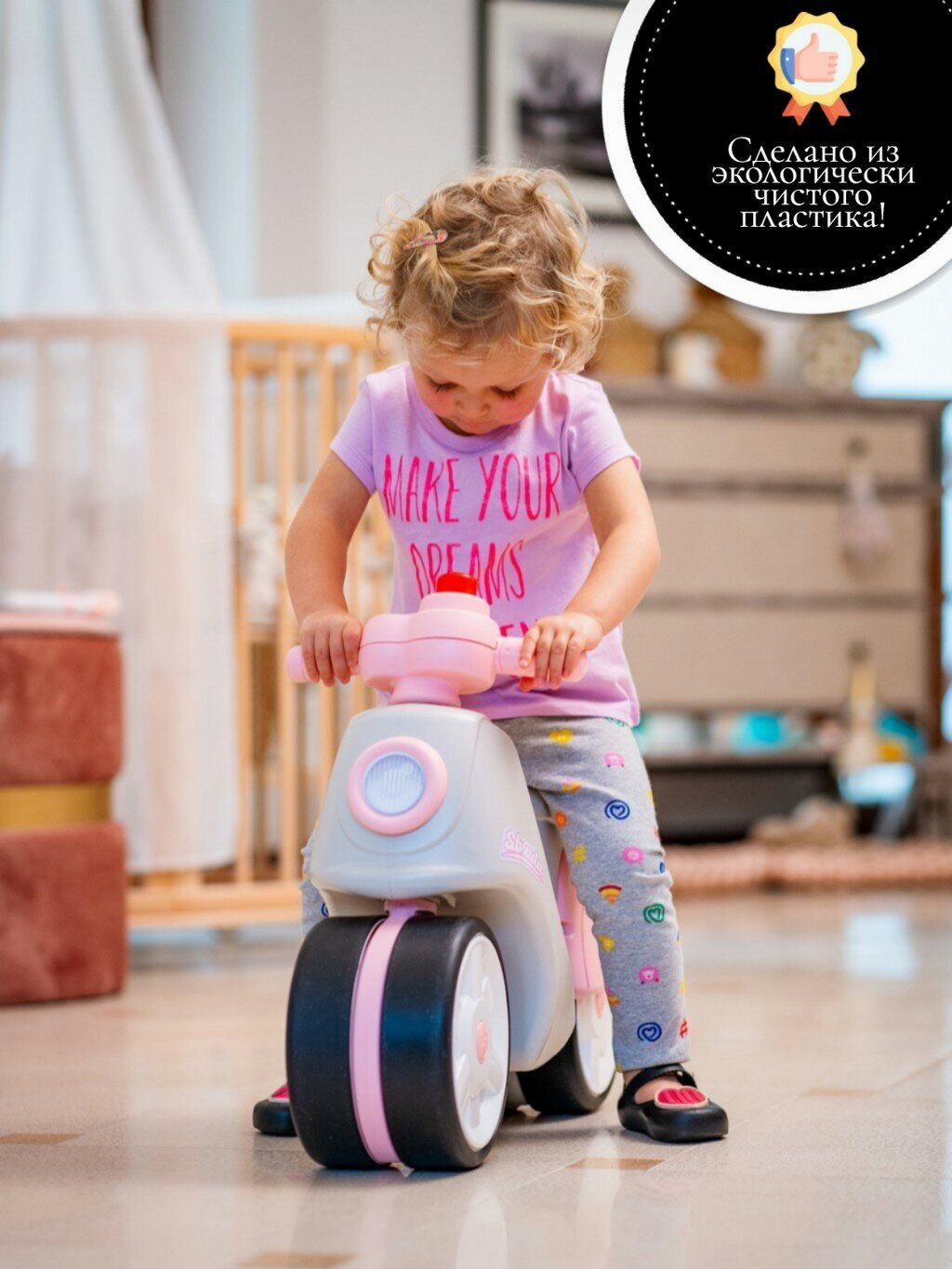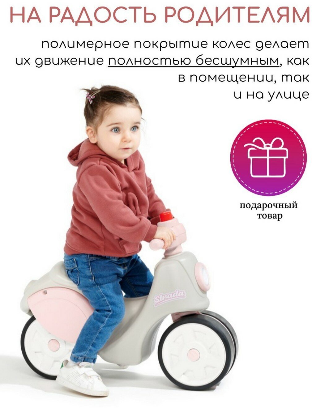 Скутер-беговел FALK Strada с клаксоном и бесшумными колесами; кремово-розовый, интересное: