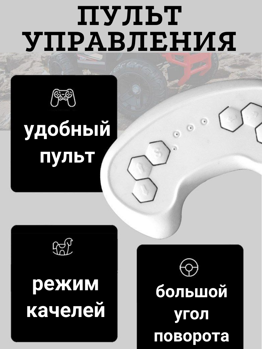 | Особенности | задний ход / индикатор заряда / мягкие накидки на сиденье / на аккумуляторе / открываются дверцы / перемещение по принципу "чемодан" / плавный ход / радиоуправление / требуется частичная сборка |