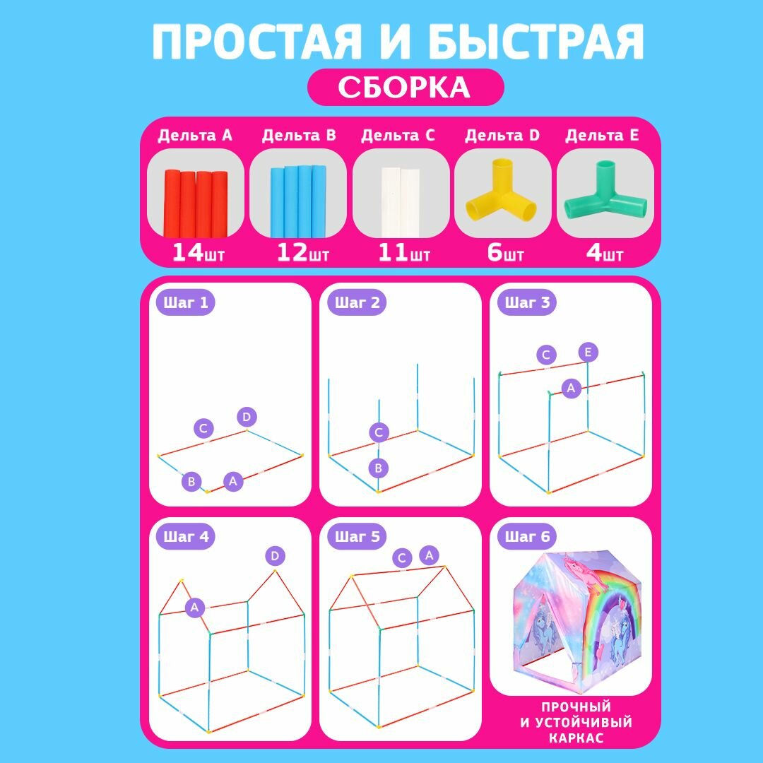 Палатка детская игровая в коробке. Домик шатер для детей 102х95х72 Вигвам для девочек единороги 8192 интересное:
