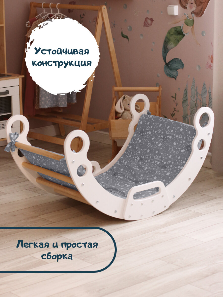 Комплект Горка Арка Пиклера качалка для детей белый-лак + серый матрасик интересное: