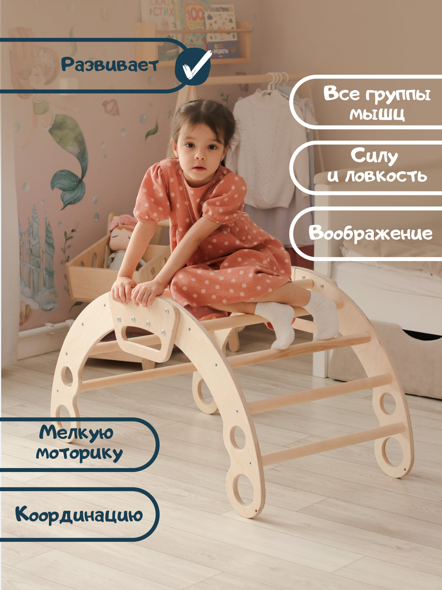 Комплект Арка Пиклера качалка для детей без покрытия + бежевый матрас