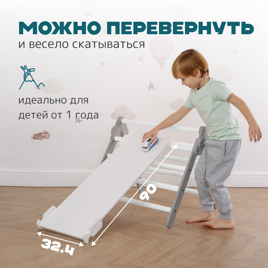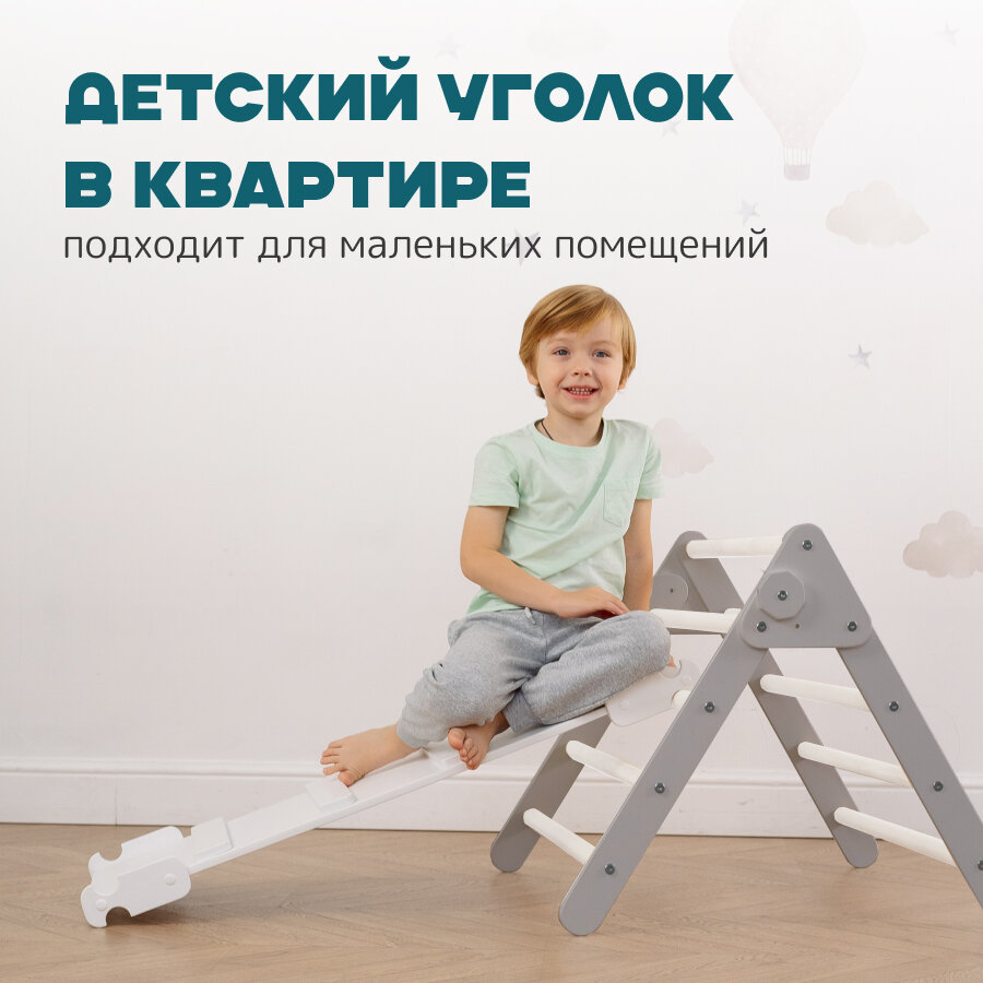 СохранитьКомплект треугольник Пиклер Мини серый + белый + горка "Лесенка"белая интересное: