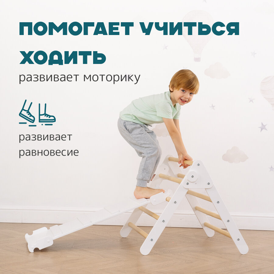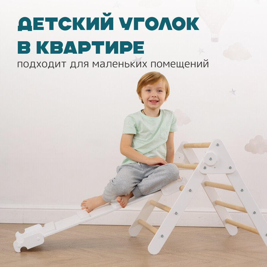 Комплект треугольник Пиклер Мини серый + белый + горка "Лесенка"белая