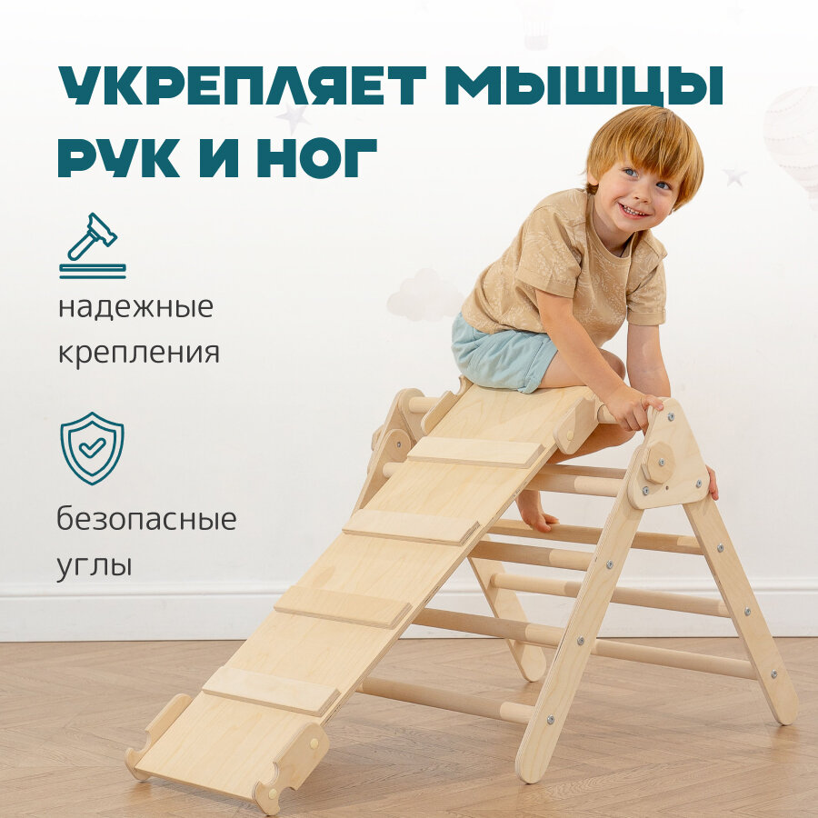Комплект Мини Пиклер треугольник лакированный + горка "Скалодром"