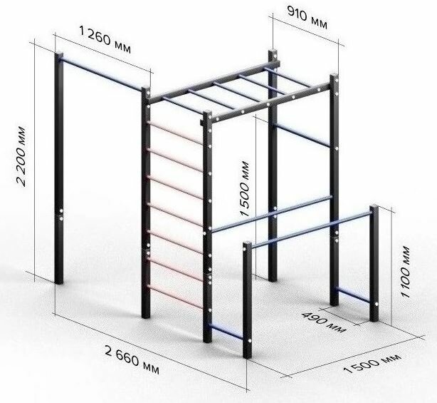 Спортивная площадка для детей и взрослых "Workout74", брусья, турники, рукоходы, лестница
