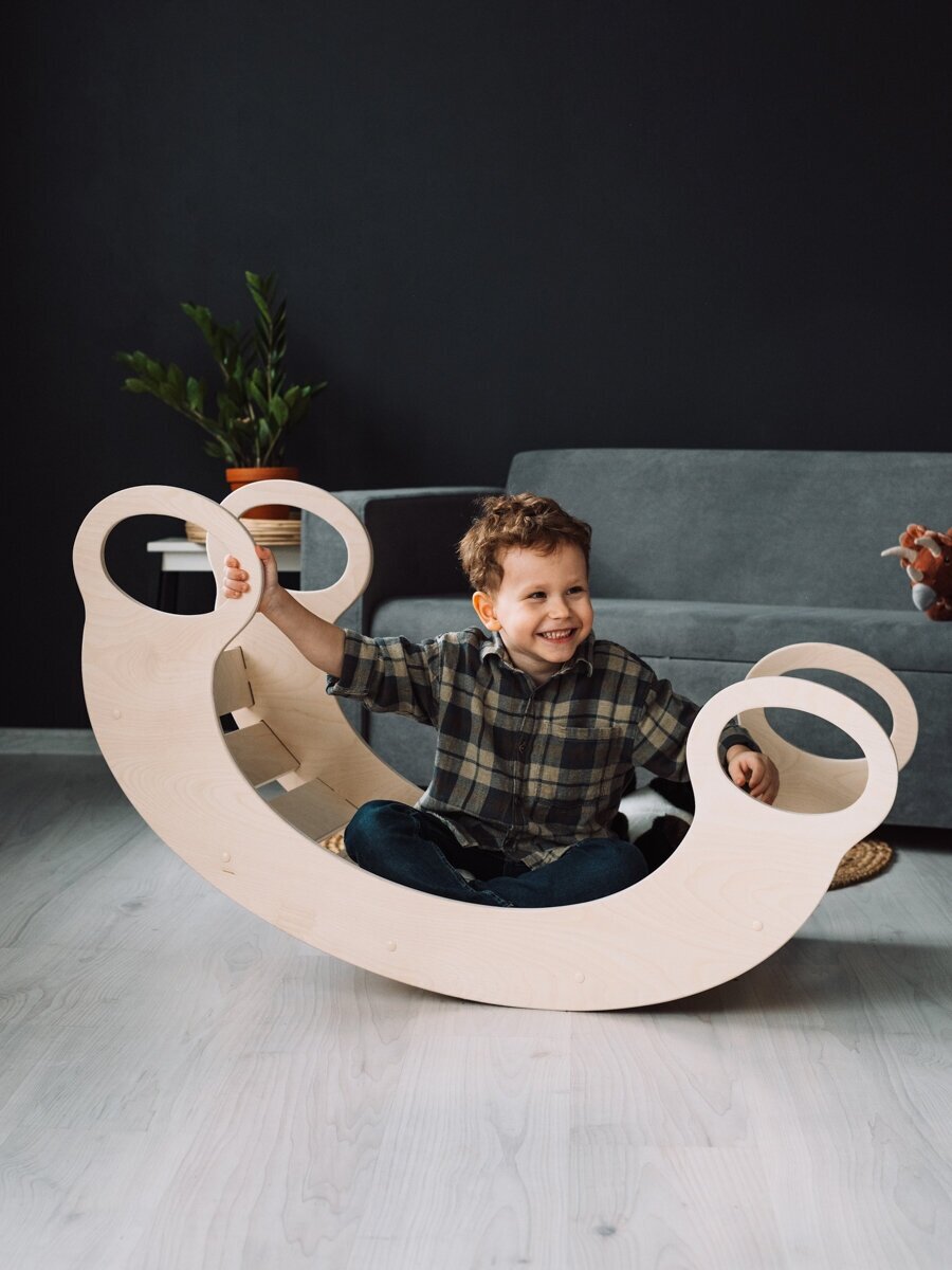 Мостик-качалка для детей от 1 года до 5 лет, игровой комплекс 4в1, горка, стойка, качели детские, мостик из дерева TEXTURA интересное: