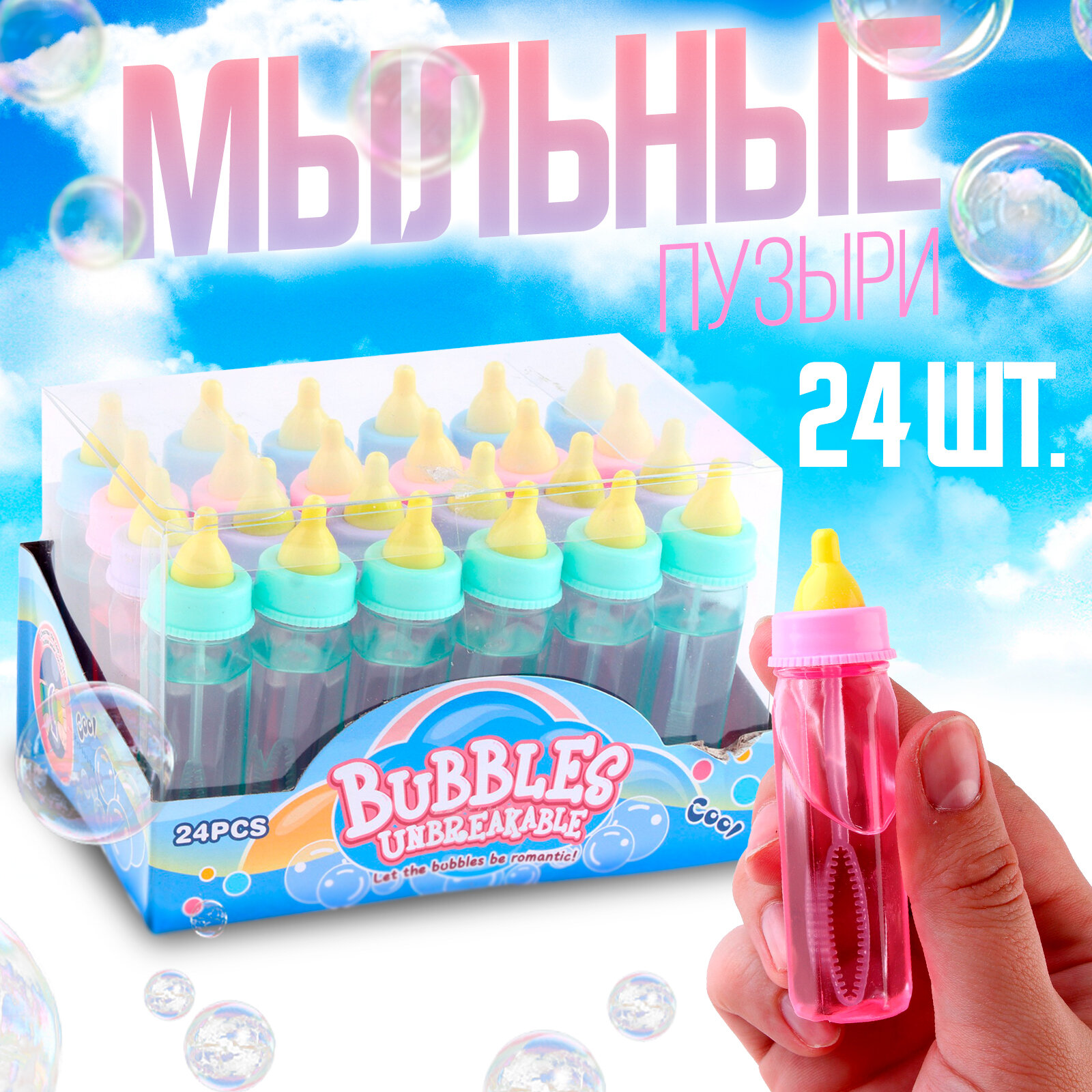 Нелопающиеся мыльные пузыри "Бутылочка", микс 3627017, 12 шт интересное: