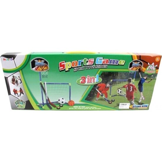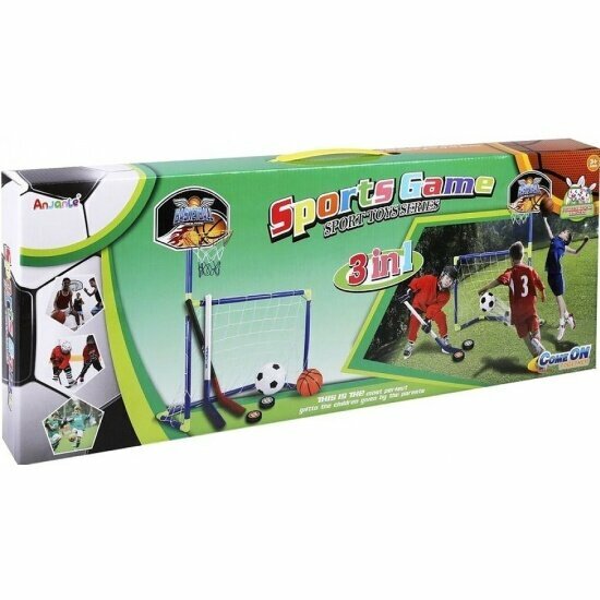 Купить Набор 3 в 1 Футбол+Баскетбол+Хоккей, ворота 72*36*56 см., щит с кольцом, 2 мяча, 2 шайбы, 2 клюшки, насос