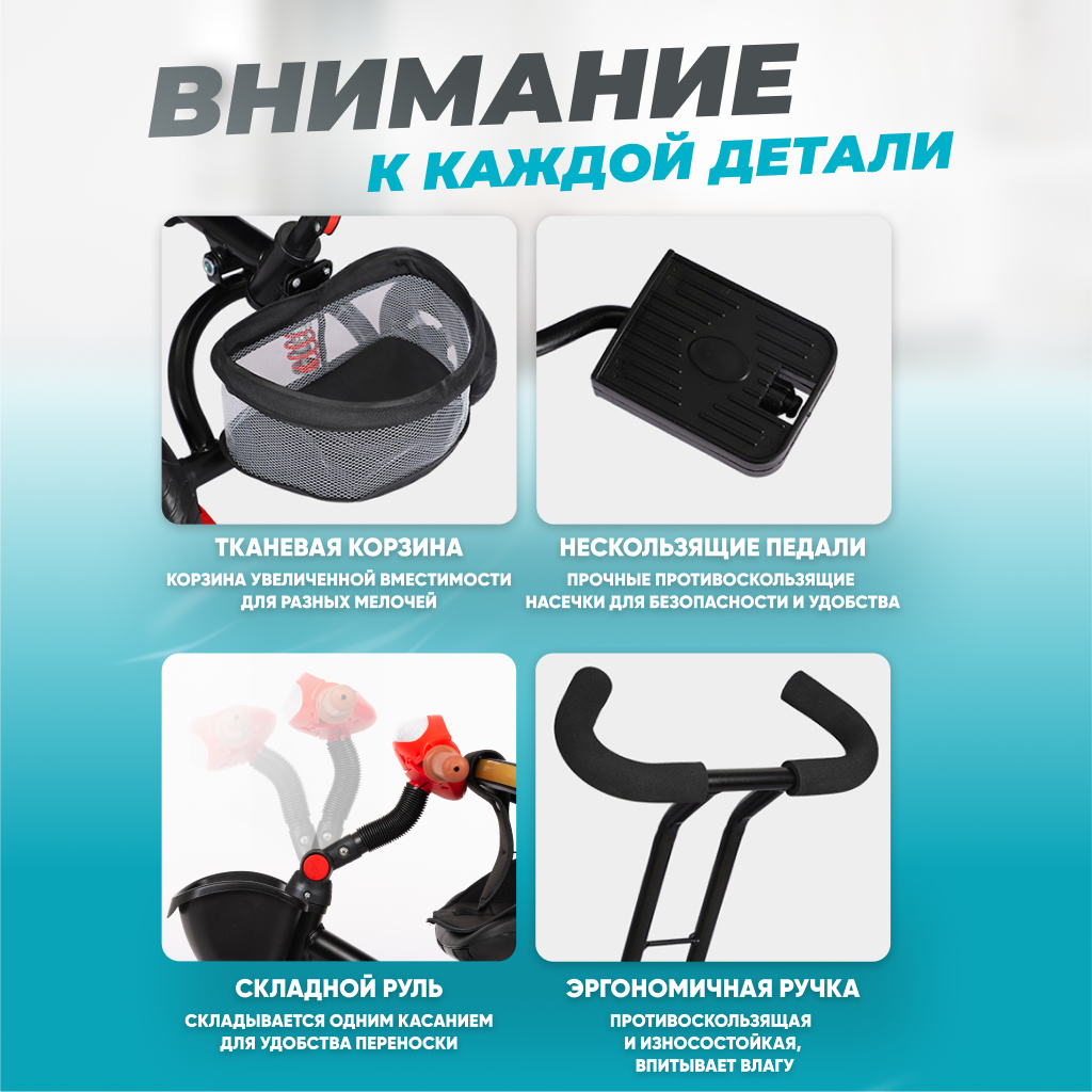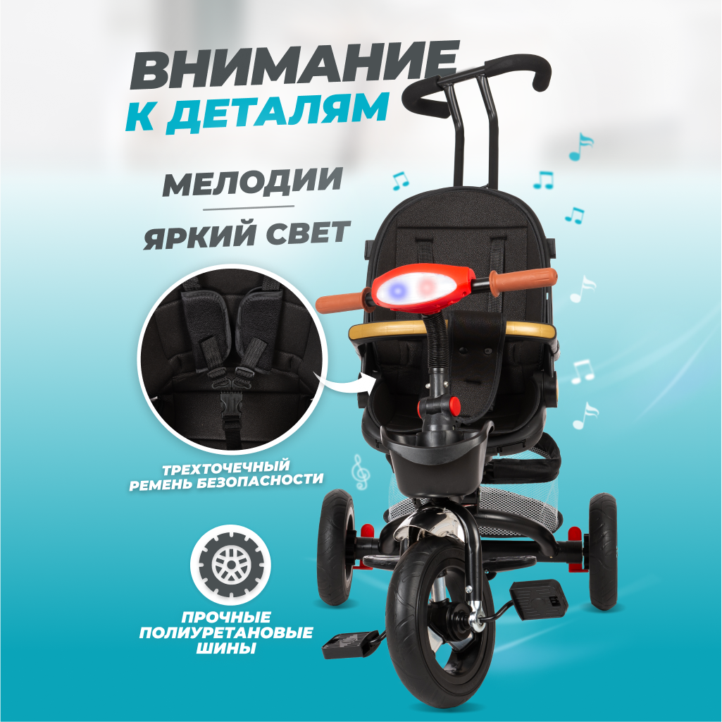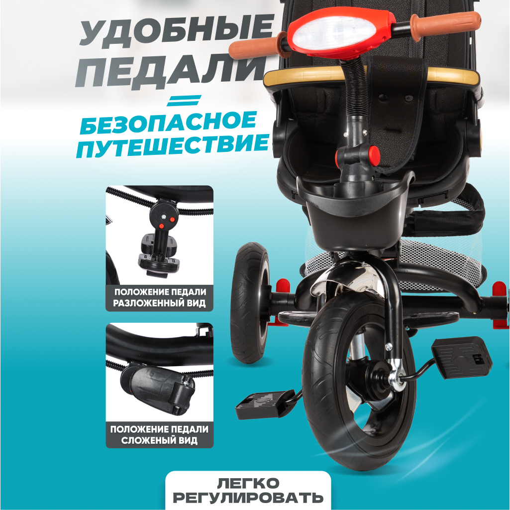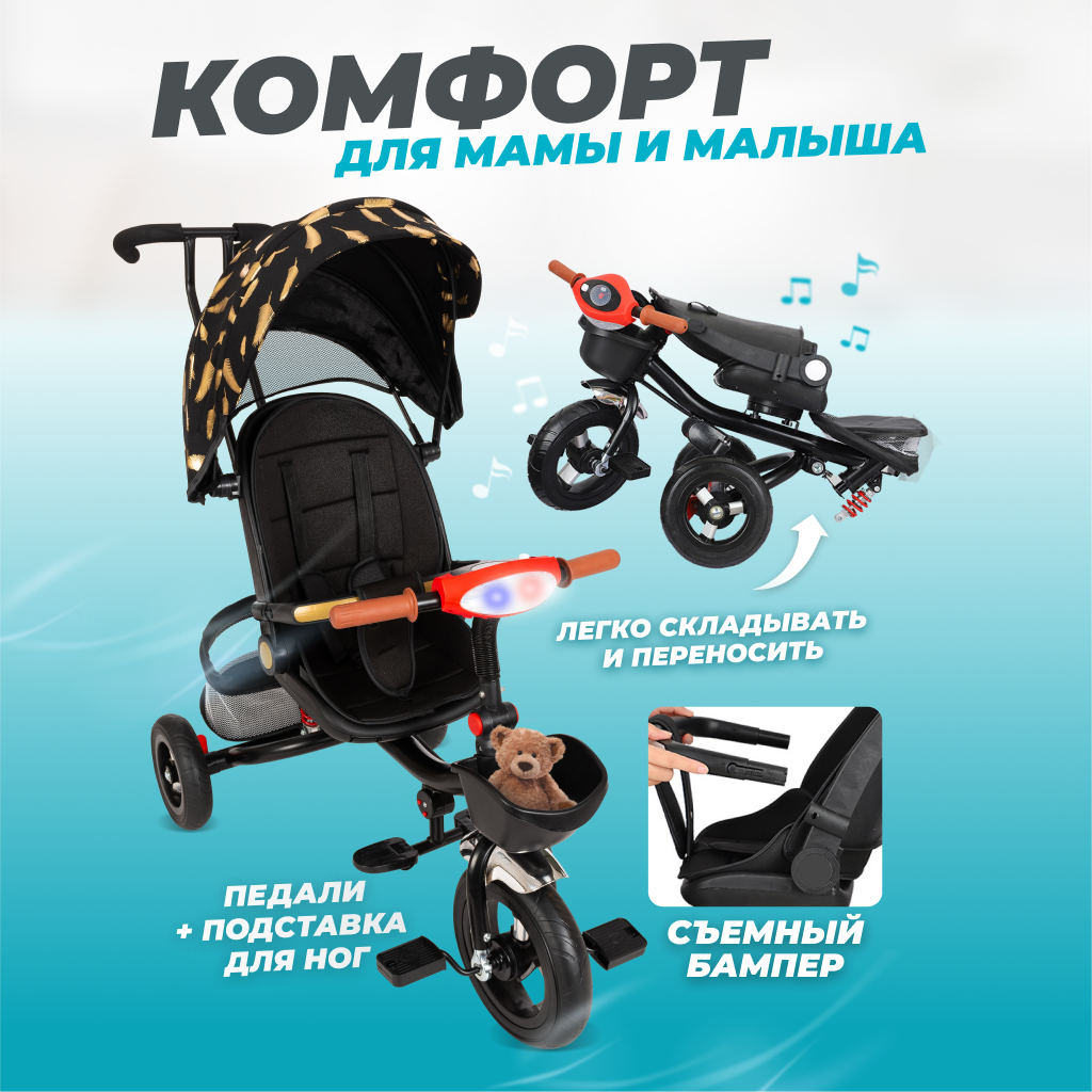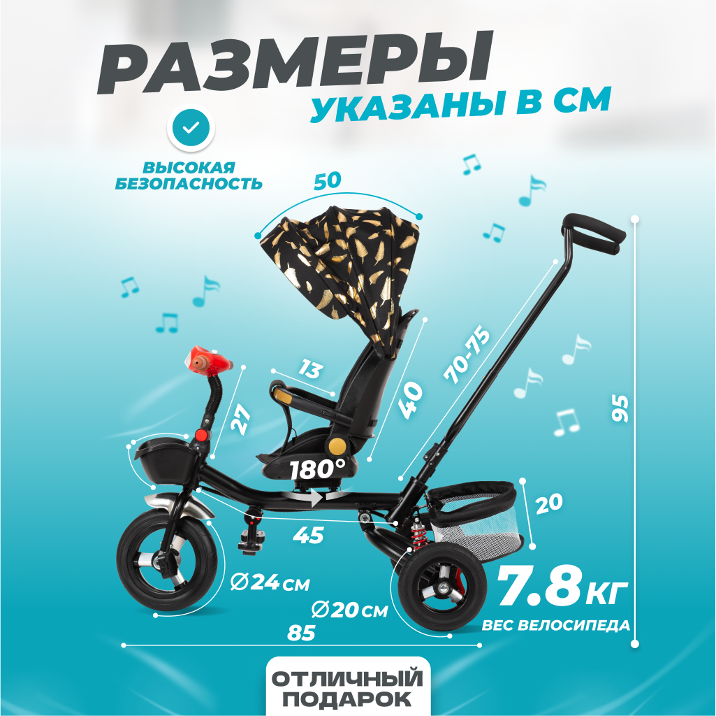 Велосипед коляска детский трехколесный Solmax&Kids с поворотным сиденьем и ручкой, черный/золотистый интересное:
