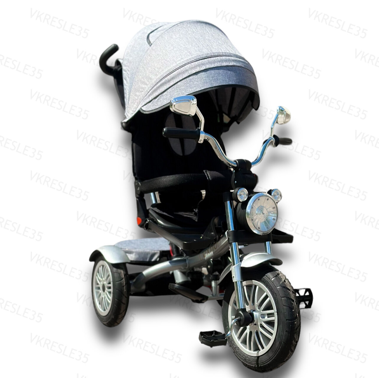 Купить Детский трехколесный велосипед, Luxmom Chopper, фонарь, поворот сиденья 360, цвет серый