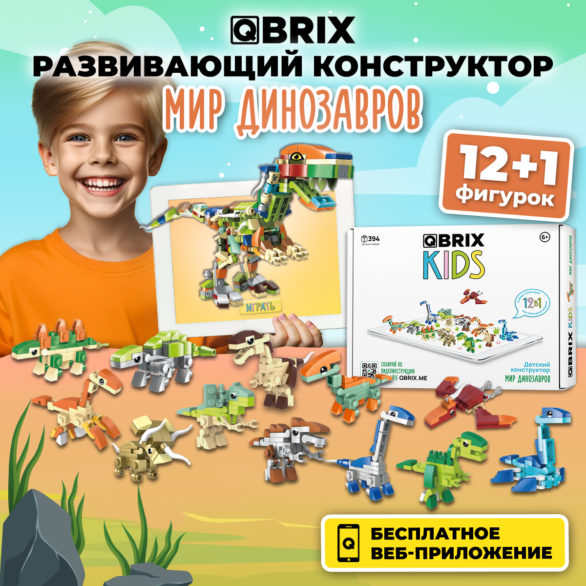 Конструктор QBRIX KIDS Мир динозавров (совместим с лего/lego, пластиковый, развивающий, для мальчиков, для девочек, динозавры, Тираннозавр,)