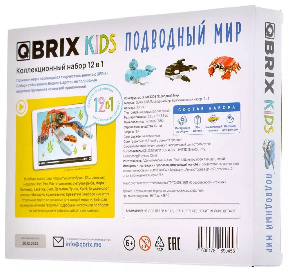 Конструктор QBRIX KIDS Подводный мир (совместим с лего/lego, пластиковый, развивающий, для мальчиков, для девочек)