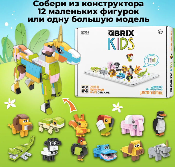 Конструктор QBRIX KIDS Царство животных (совместим с лего/lego, пластиковый, развивающий, для мальчиков, для девочек, животные)