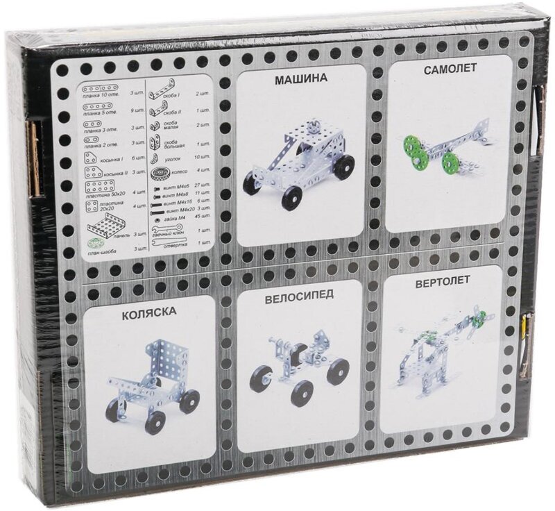 | Дополнительная информация | размеры упаковки: 0,233x0,202x0,043 м; можно собрать 5 моделей: машина, коляска, вертолет, самолет, велосипед |