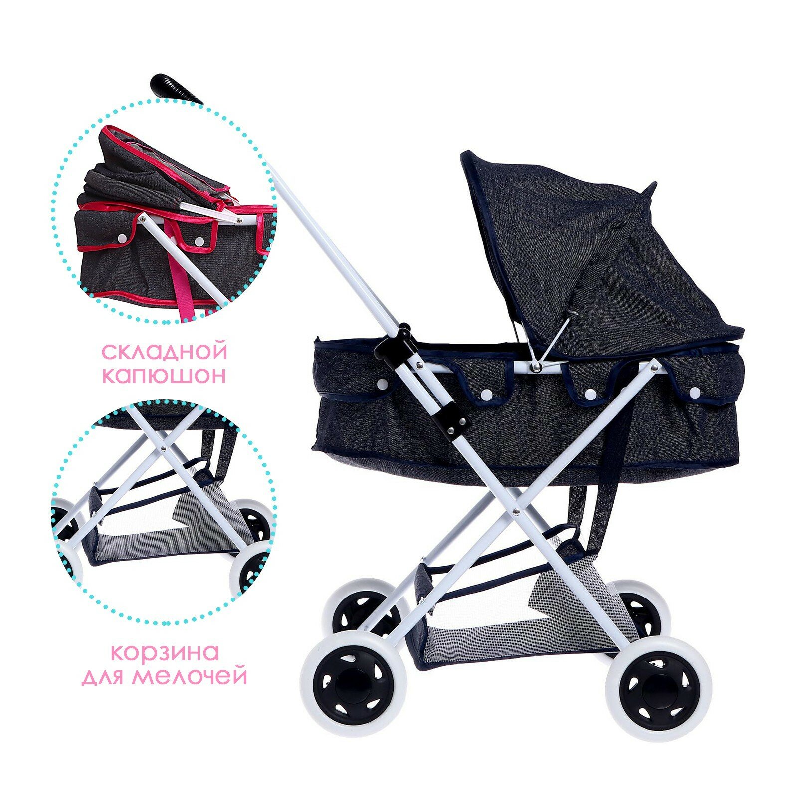 Коляска универсальная для кукол, с корзиной, металлический каркас цвета микс интересное: