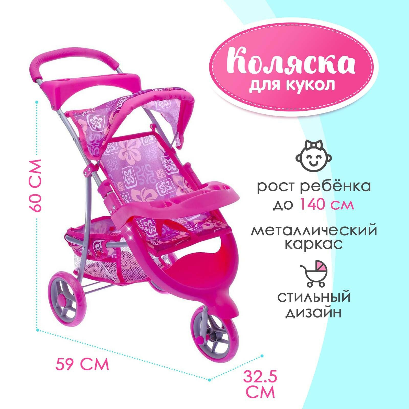 Купить Коляска для кукол трехколесная, металл 9614