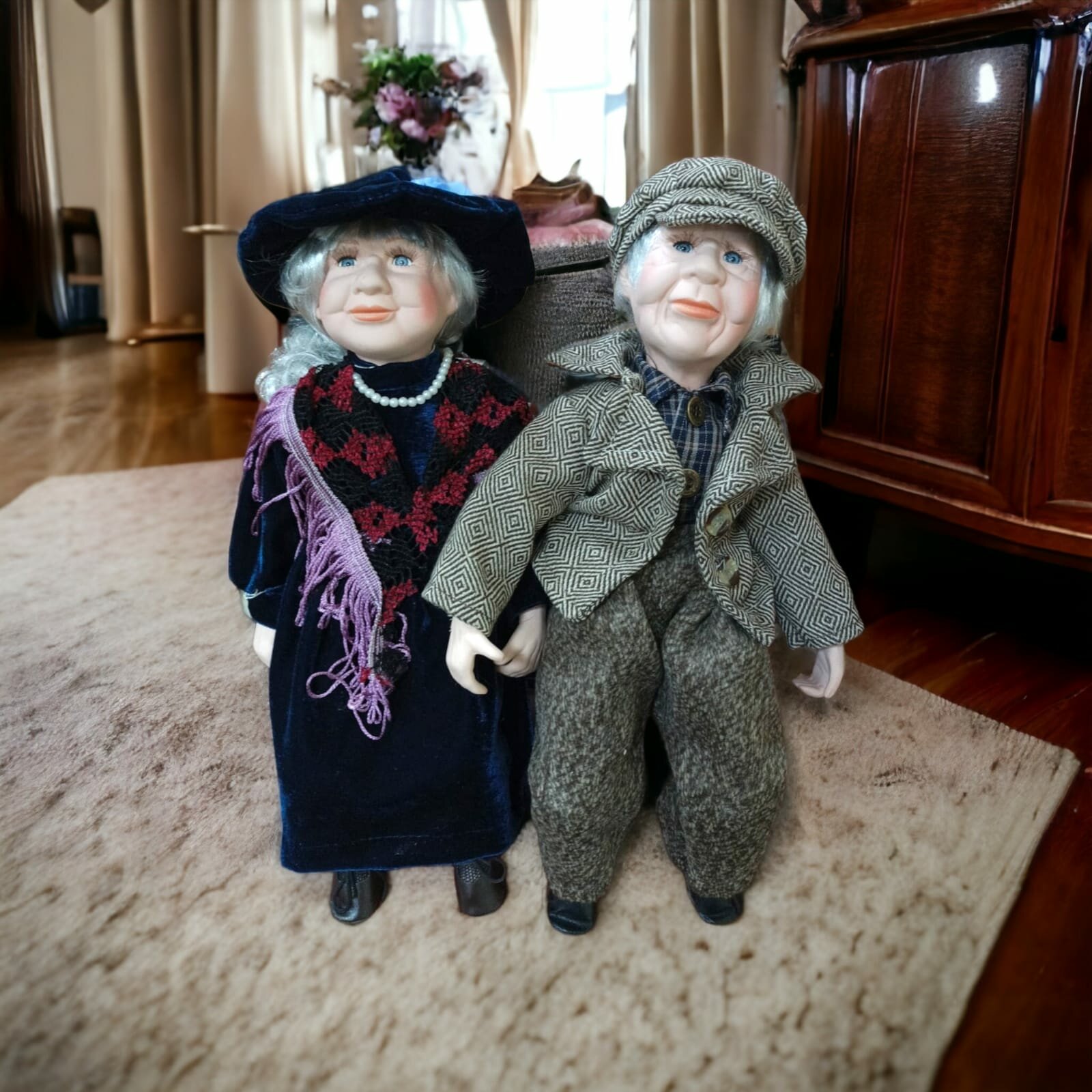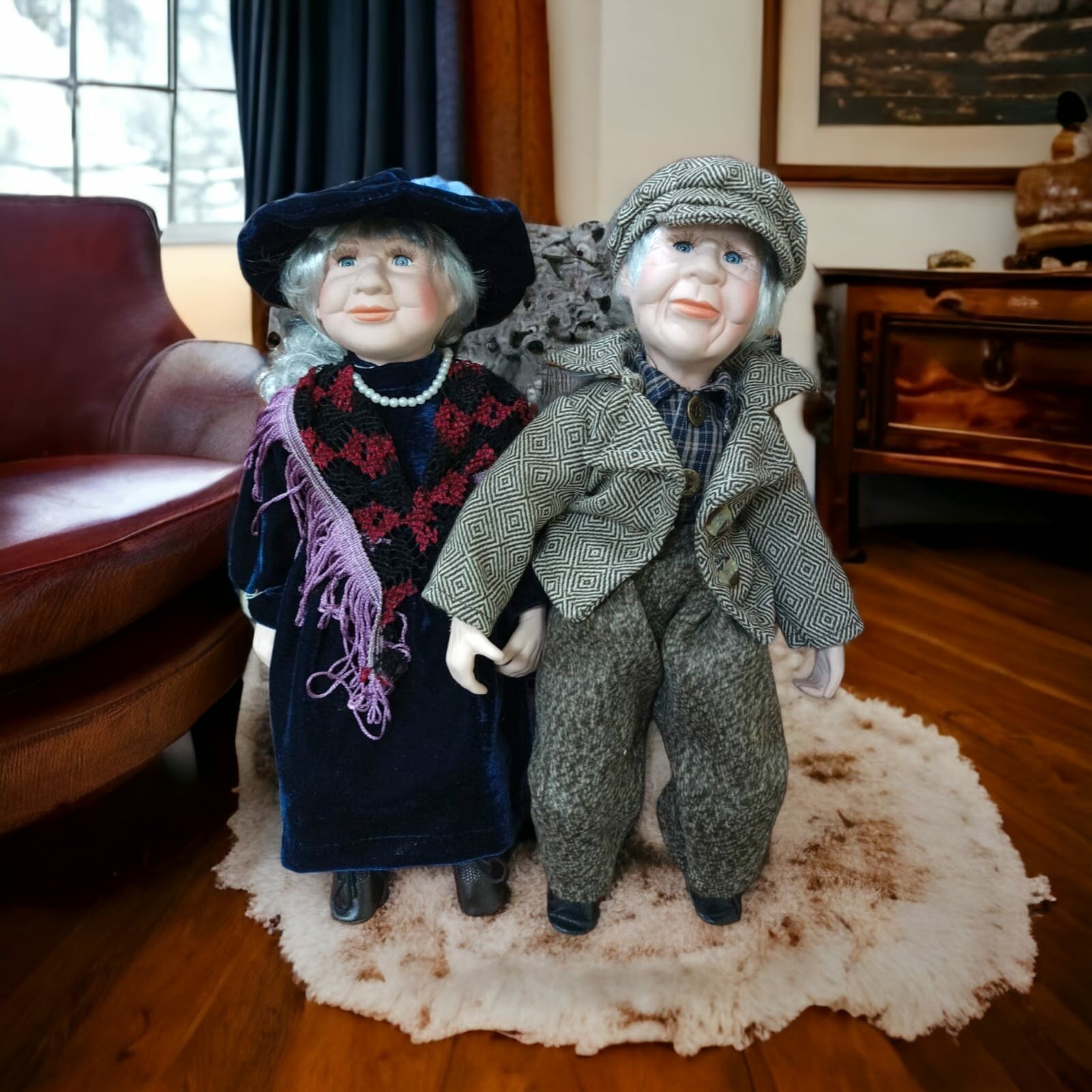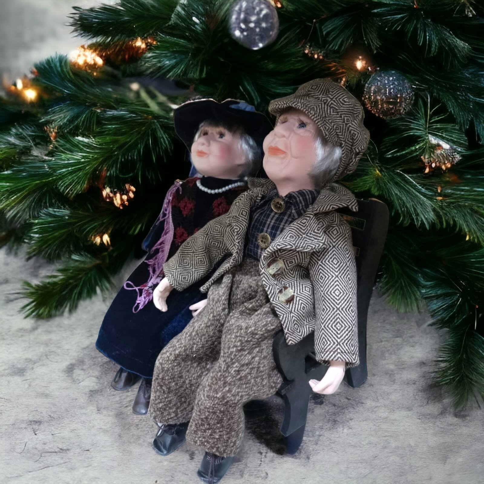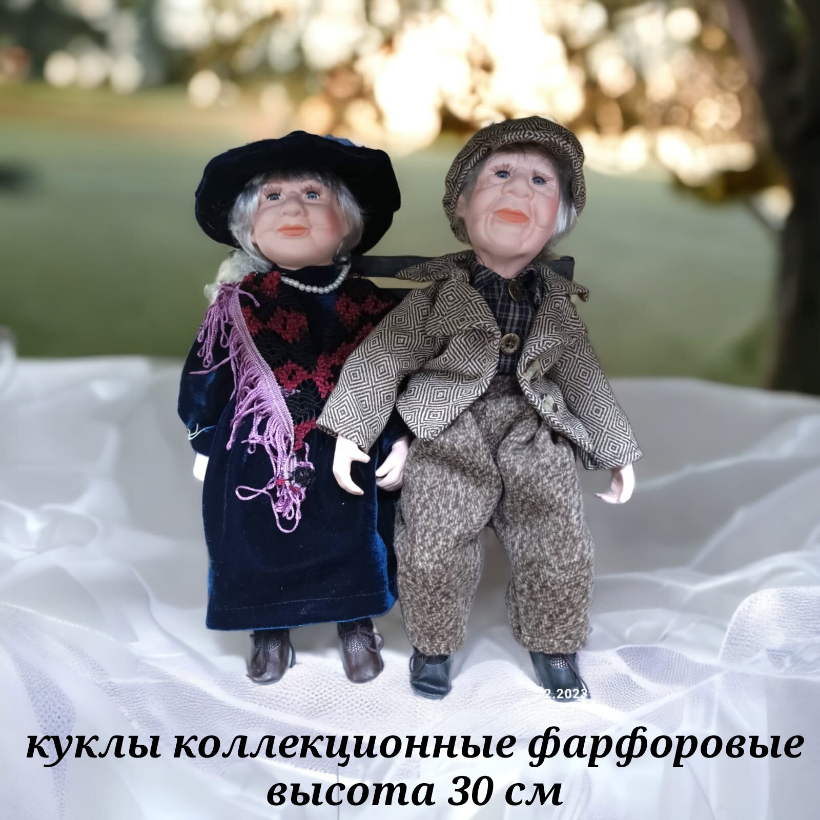 Купить Фарфоровые коллекционные куклы Бабушка с дедушкой на скамейке 35 см