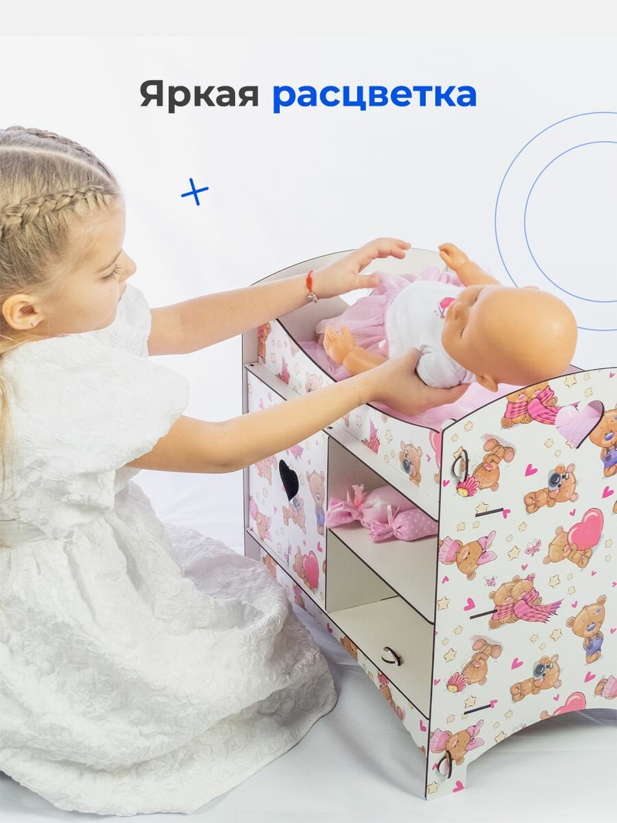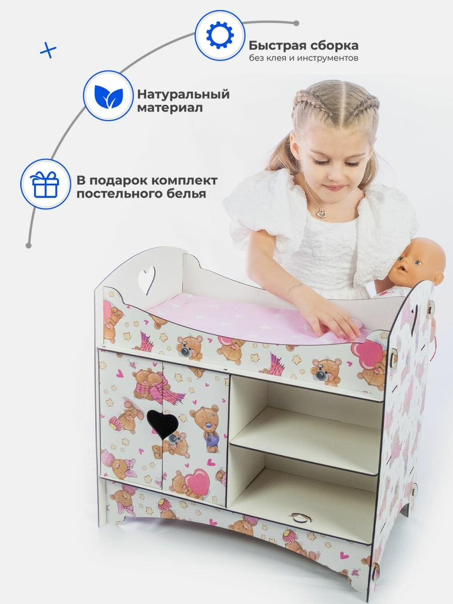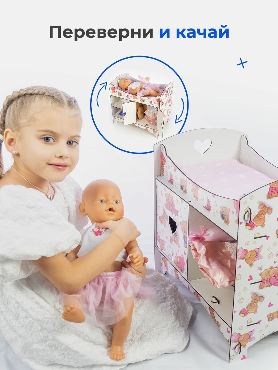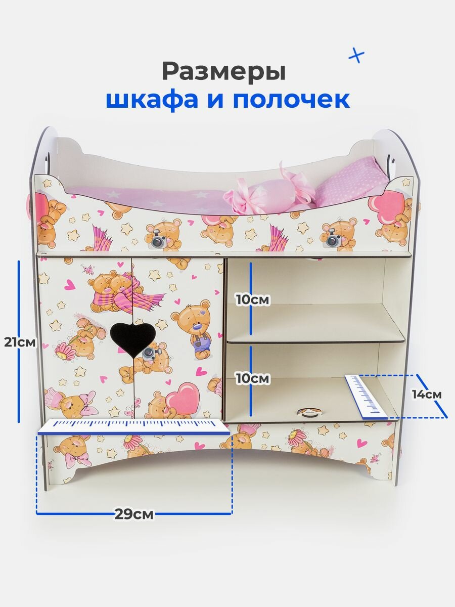 Кроватка для кукол до 45 см "Мишки" со шкафом и полками, 2-х сторонняя интересное: