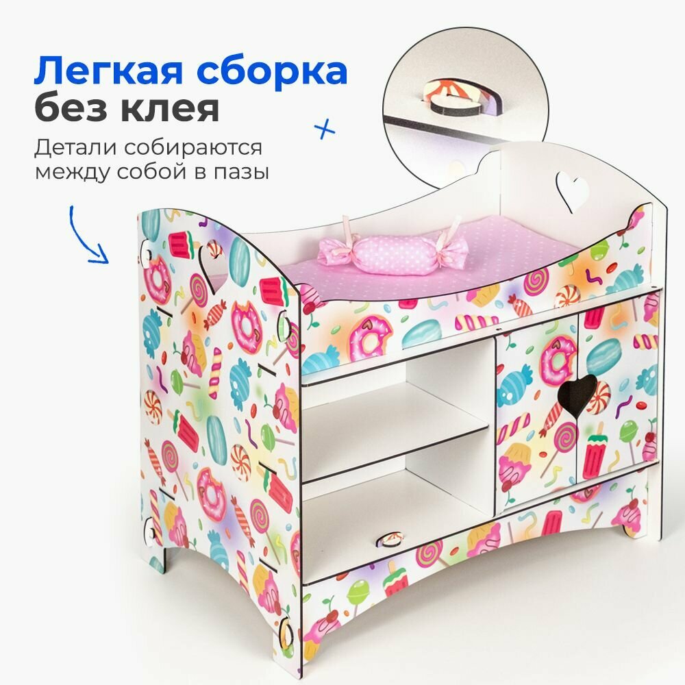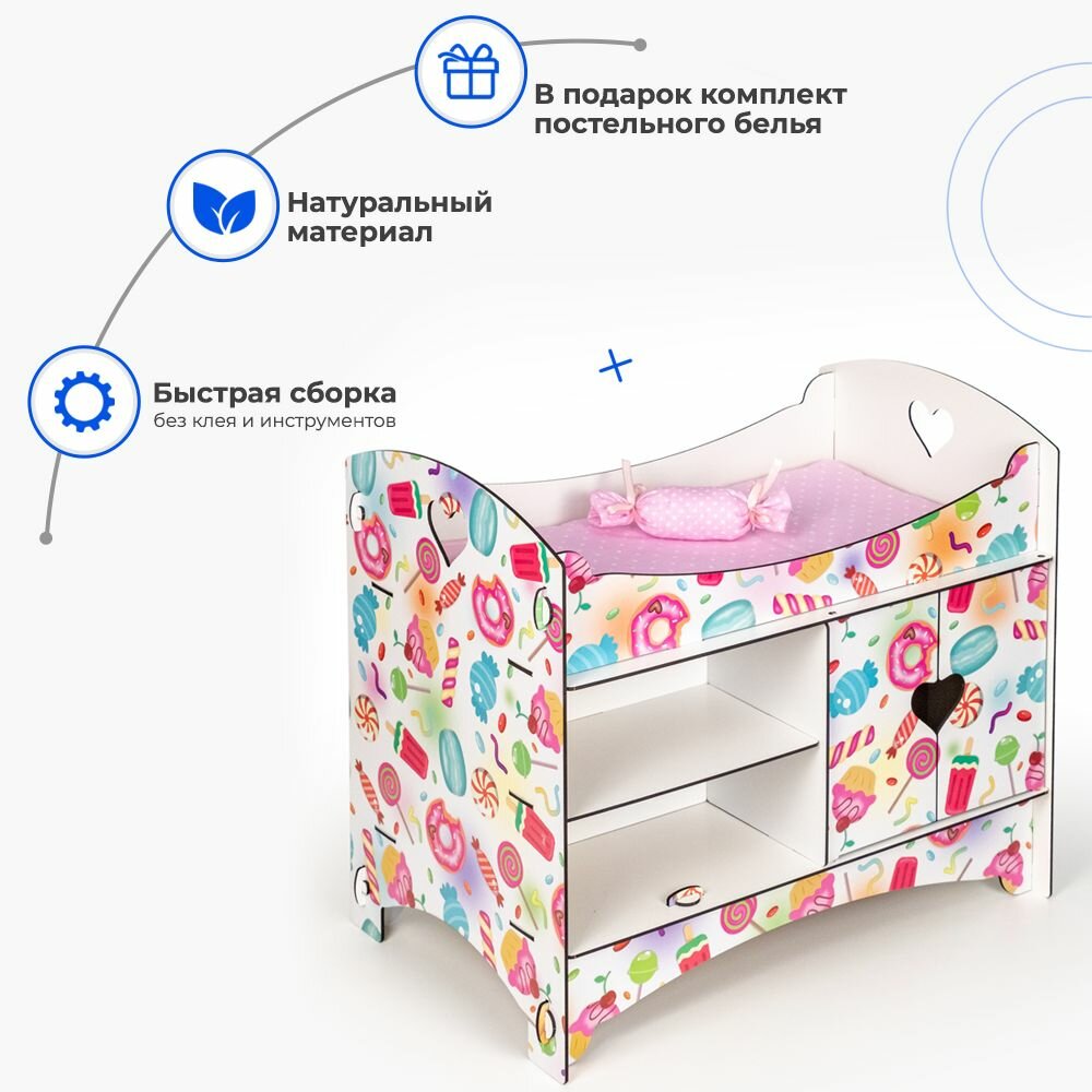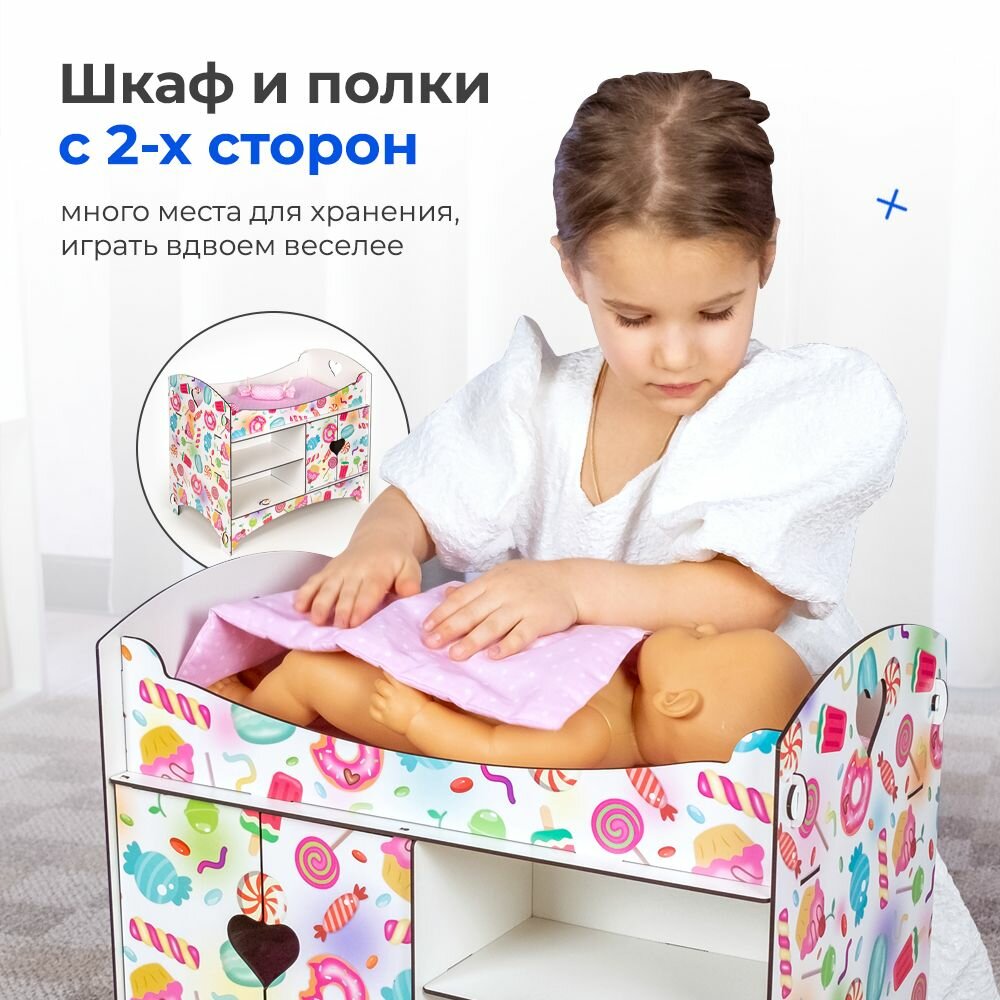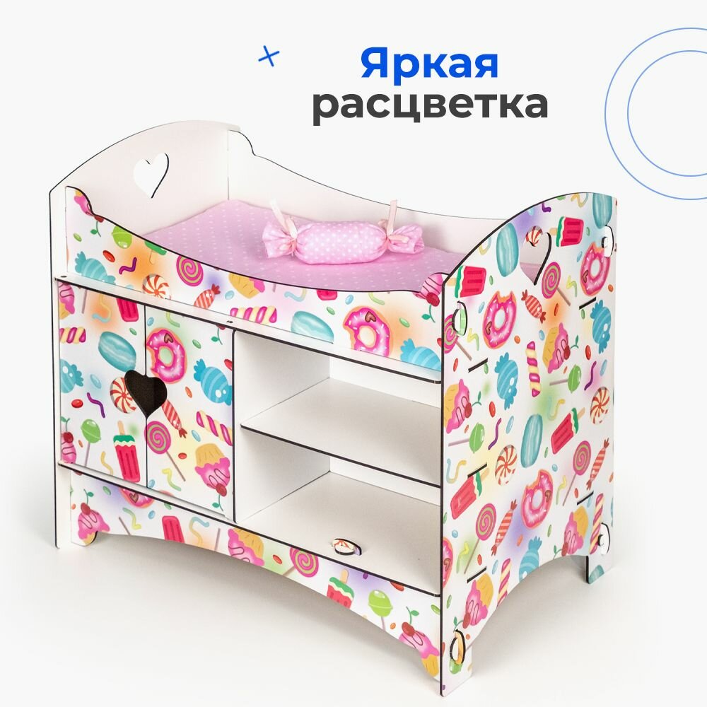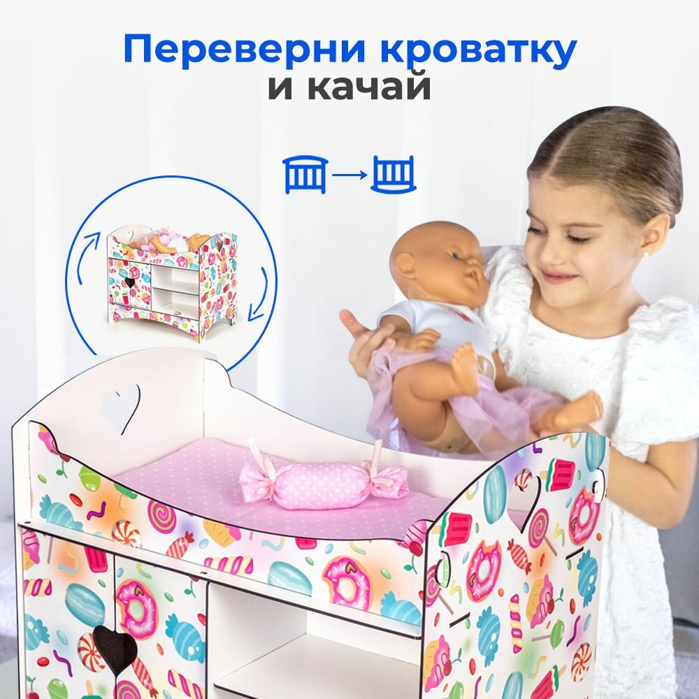 Кроватка для кукол до 45 см "Сладости" со шкафом и полками, 2-х сторонняя интересное: