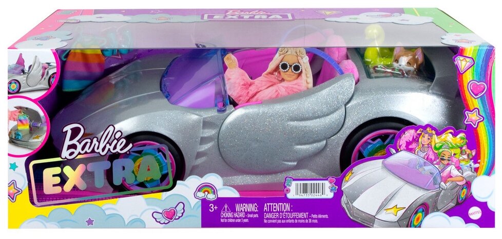Купить Автомобиль Barbie Экстра набор автомобиль кабриолет с аксессуарами HDJ47, серебристый