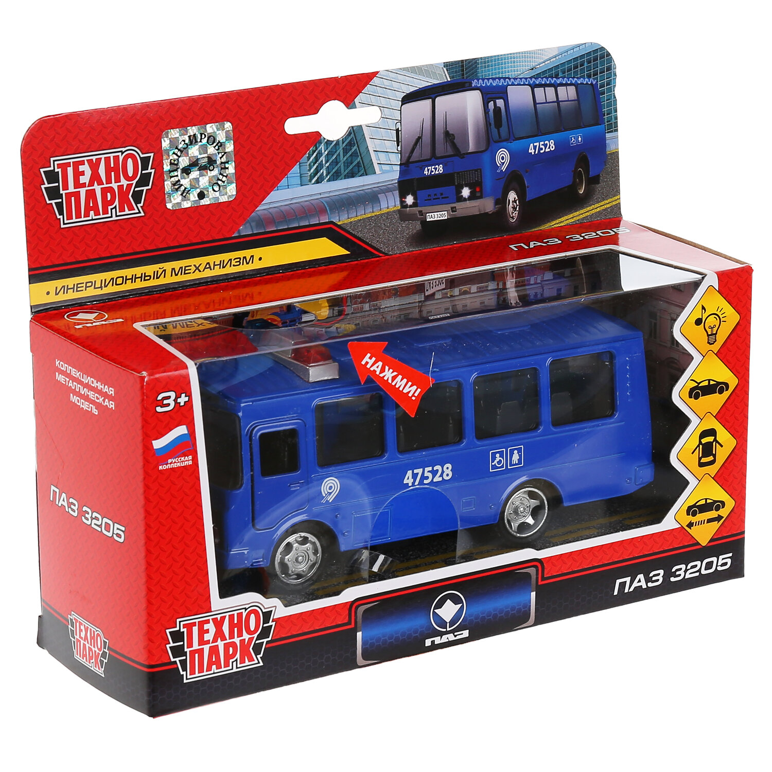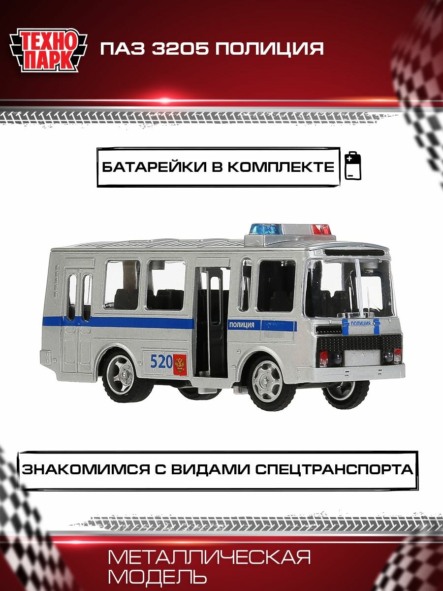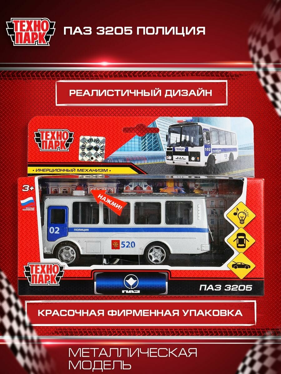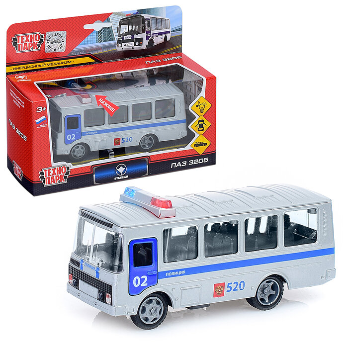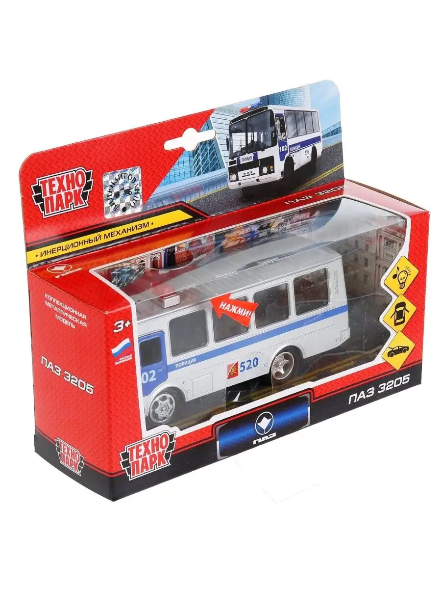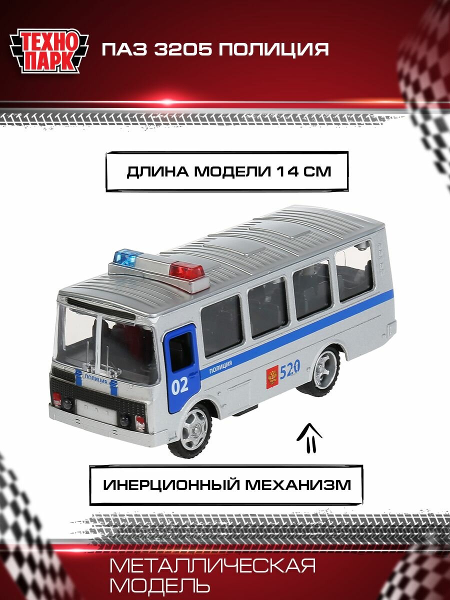 Автобус технопарк ПАЗ-3205 1:50, 14 см, белый/синий интересное:
