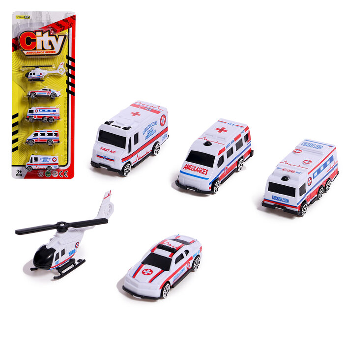 Набор машин "Скорая помощь", 5 штук, из пластика, для детей и малышей, цвет белый