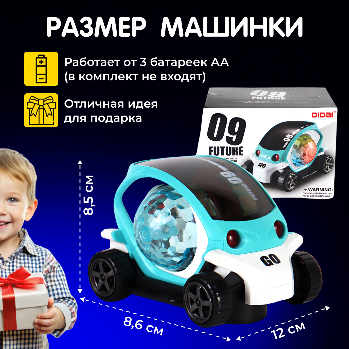 Купить Машинка игрушка диско шар светящаяся музыкальная машина подарок ребенку, цвет голубой, Discount Shop