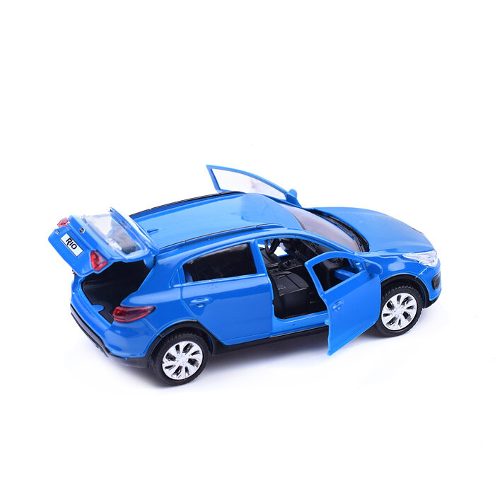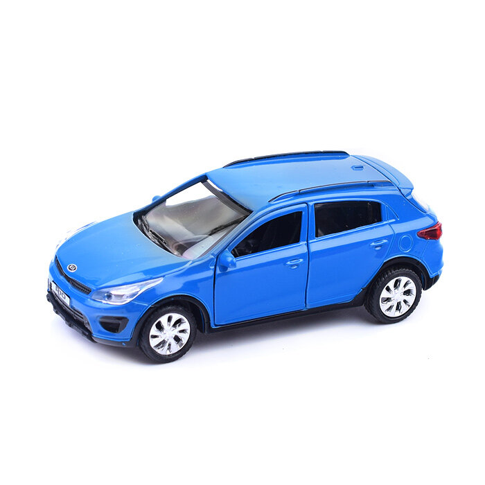 Машинка детская KIA Rio X 12 см, Технопарк, синяя, открываются двери и багажник, металлический корпус