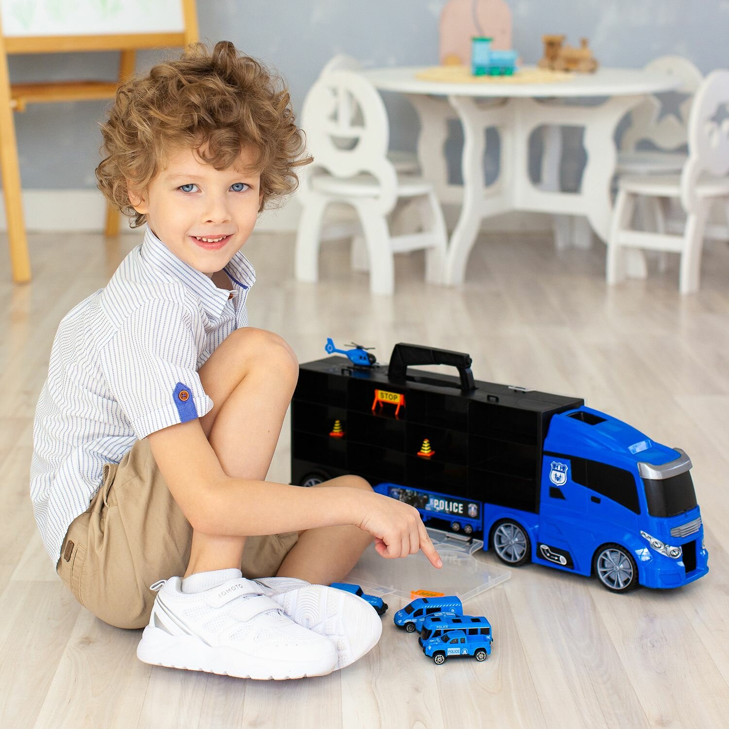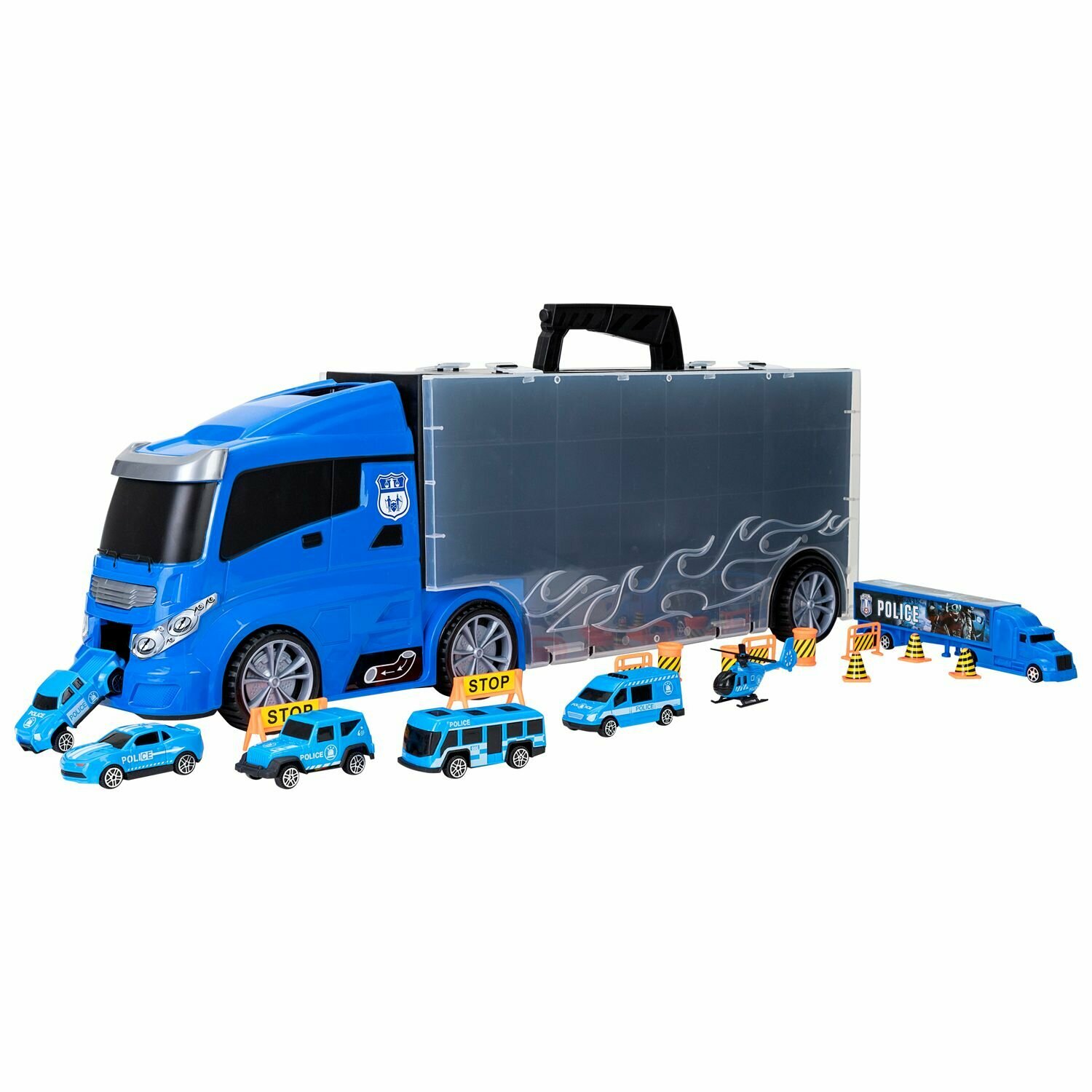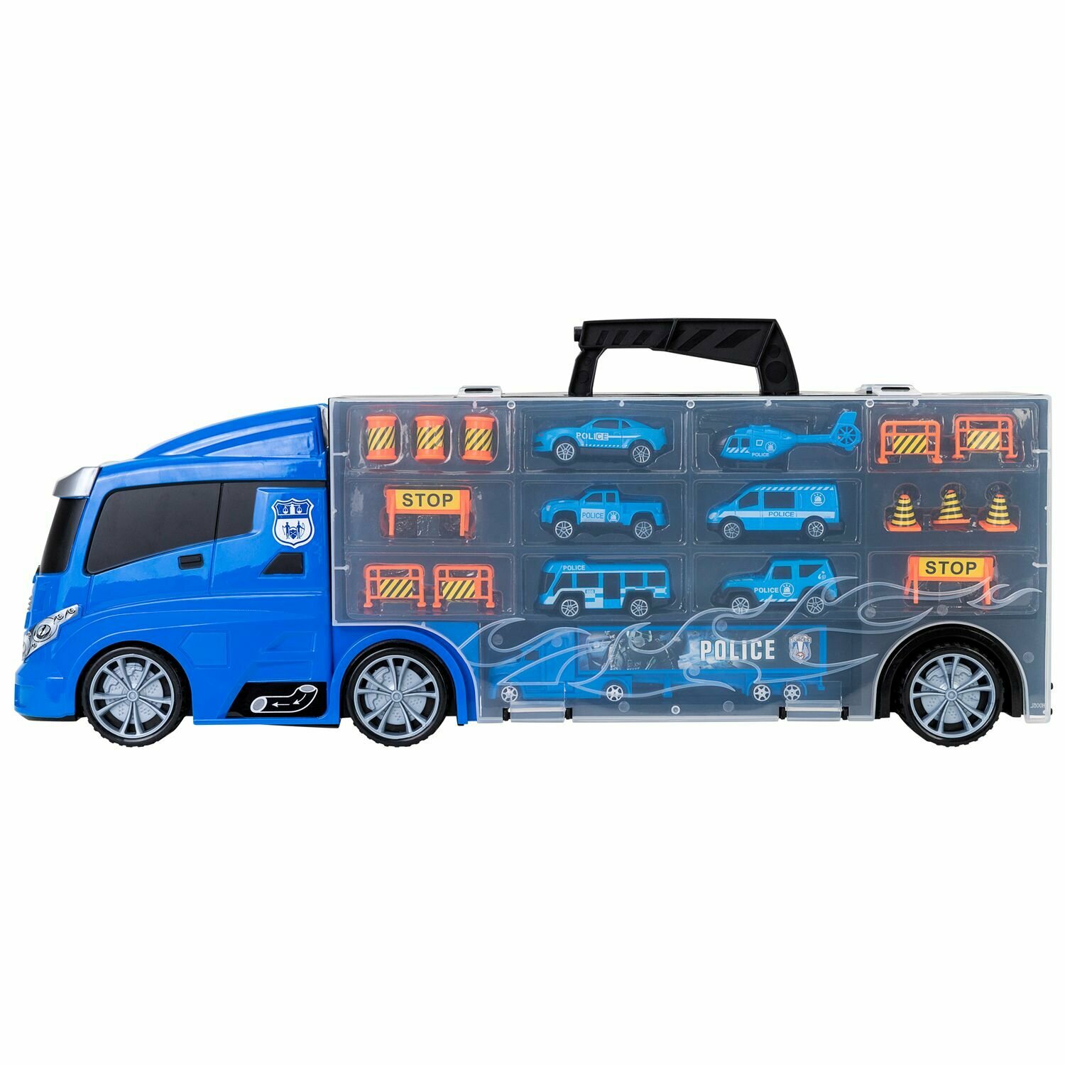 | Комплектация | автовоз-система хранения, 6 служебных автомобилей полиции, вертолет, 12 дорожных знаков |