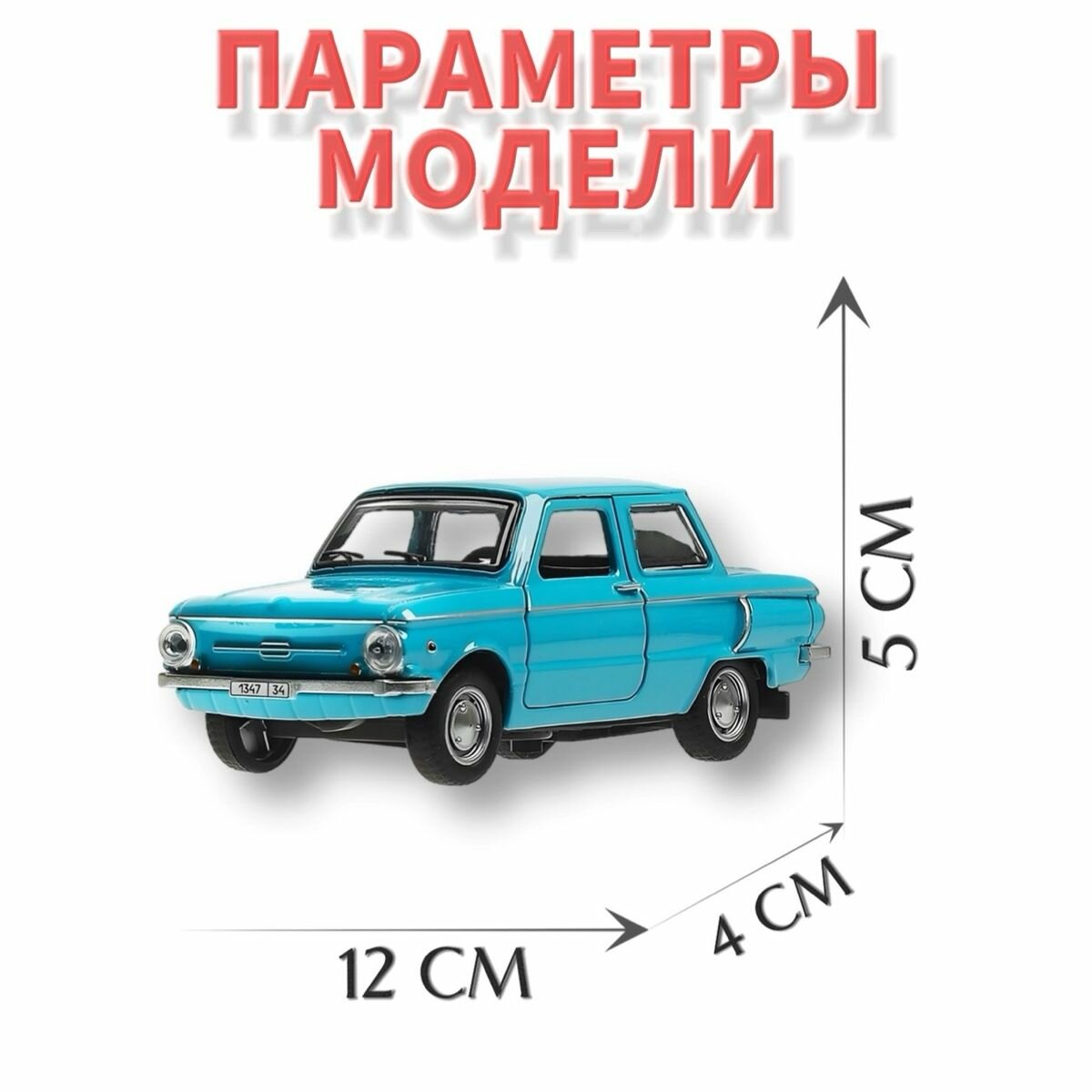 Модель ZAZ968A-12-BU ЗАЗ-968а Запорожец дл 12 см, дверь голубой Технопарк в коробке