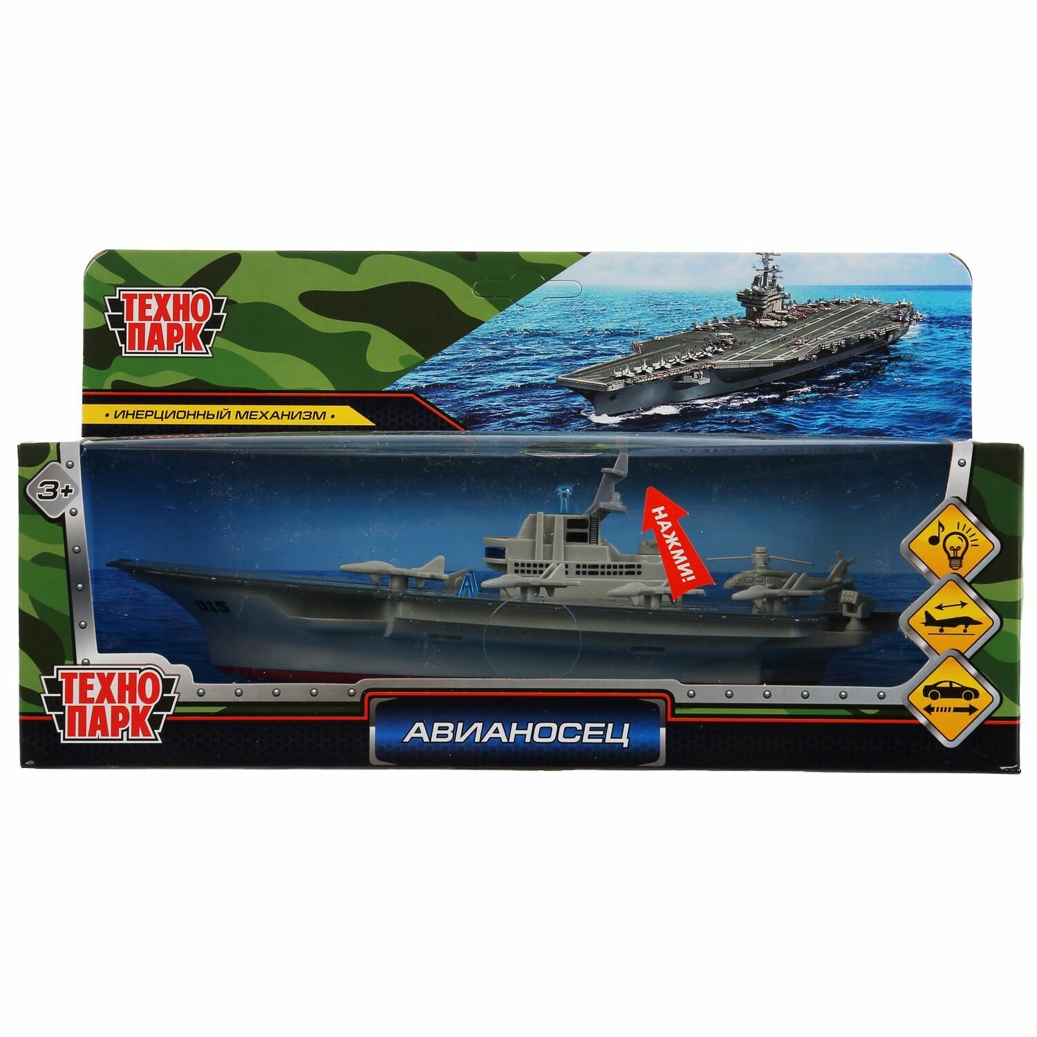 Модель Инерционная Технопарк Авианосец (30см, пластик, свет, звук, в коробке)