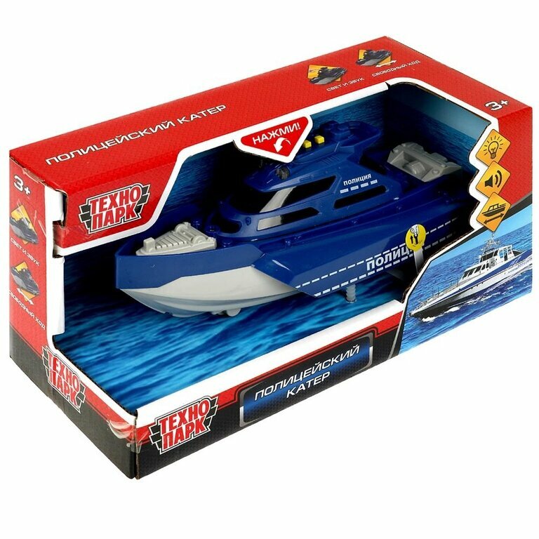 Купить Машина пластиковая полицейский катер 22 см со звуком и светом, свободный ход Цвет Синий/Серый технопарк ZY1229647-R